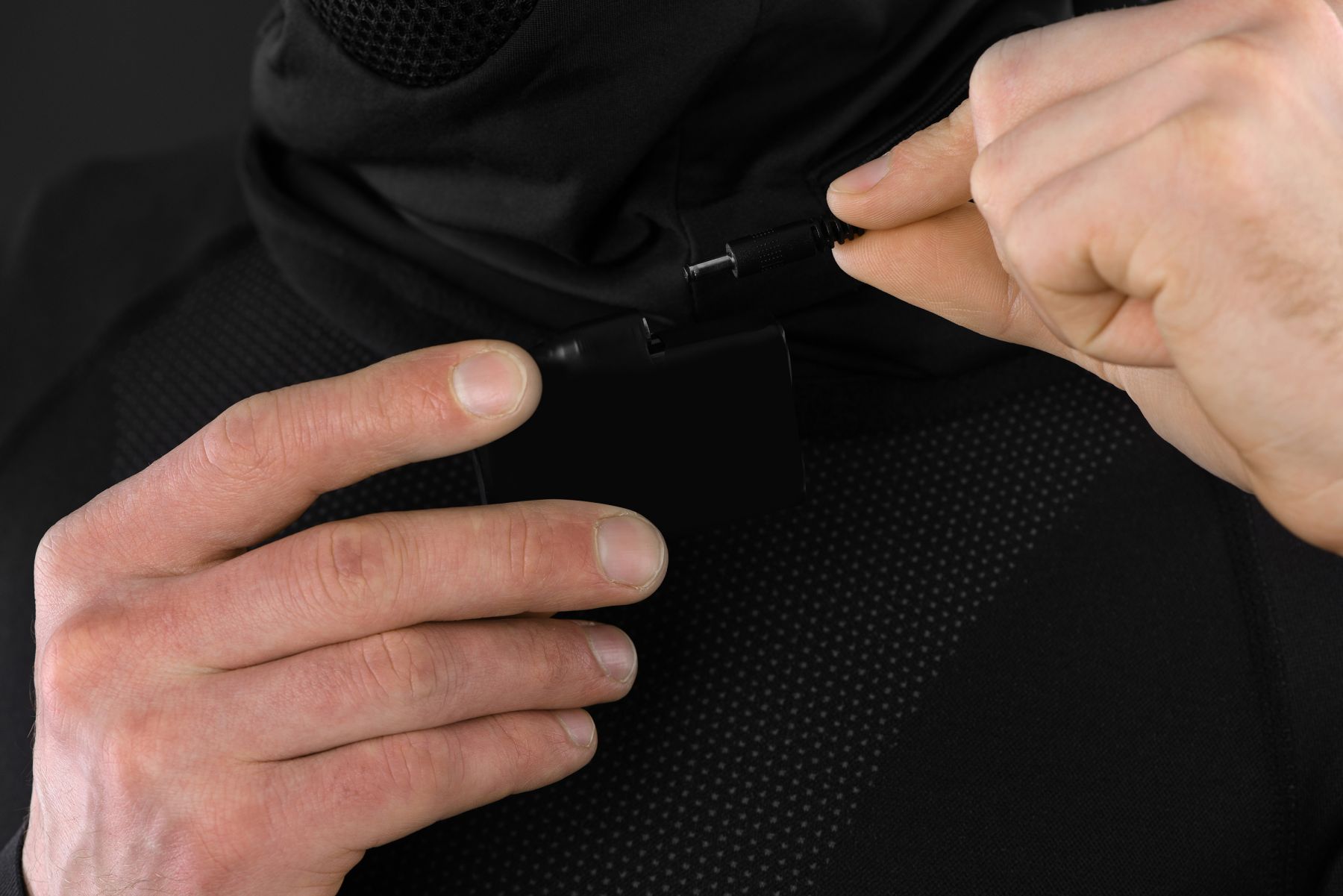 Балаклава 2E Shadow надійно захистить обличчя від вітру, пилу та водночас зігріє. Виріб класичного чорного кольору має ретельно виокремлені ділянки з інтегрованою «електричною тканиною» – правий і лівий бік. Ці надчутливі зони майже миттєво нагріваються після увімкнення вбудованого акумулятора, забезпечуючи три рівні обігріву (високий, середній, низький).