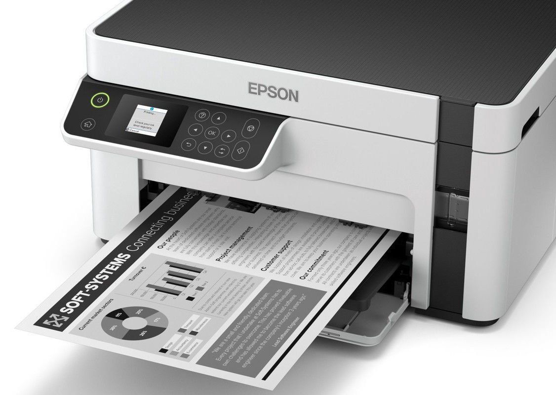 Epson M2120 - це компактний монохромний пристрій 3 в 1 (принтер-сканер-копір) з підтримкою підключення по Wi-Fi і Wi-Fi Direct. Як і інші моделі серії «Фабрика друку» БФП Epson M2120 використовує вбудовані ємності для чорнил, замість картриджів. Крім того, «Фабрика друку» використовує запатентовану п'єзоелектричну технологію Epson Micro Piezo, яка, на відміну від інших технологій друку, не вимагає нагріву чорнила, а значить, споживає значно менше електроенергії.