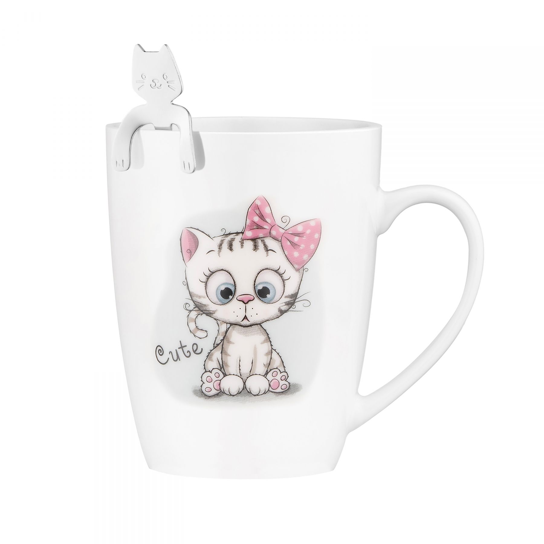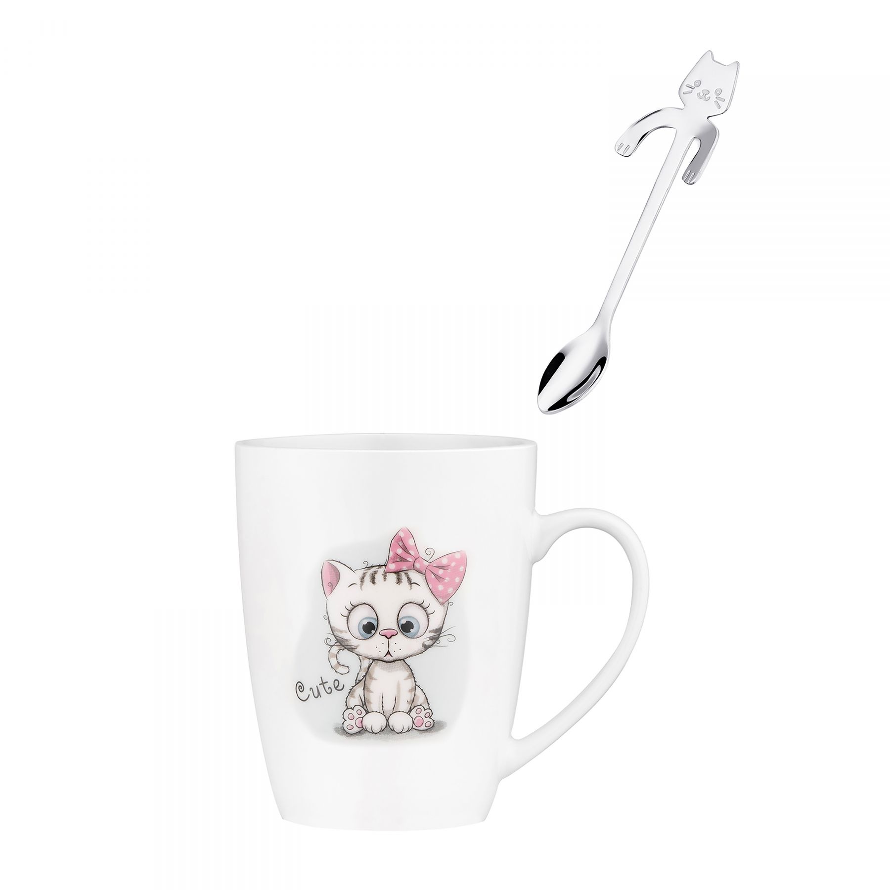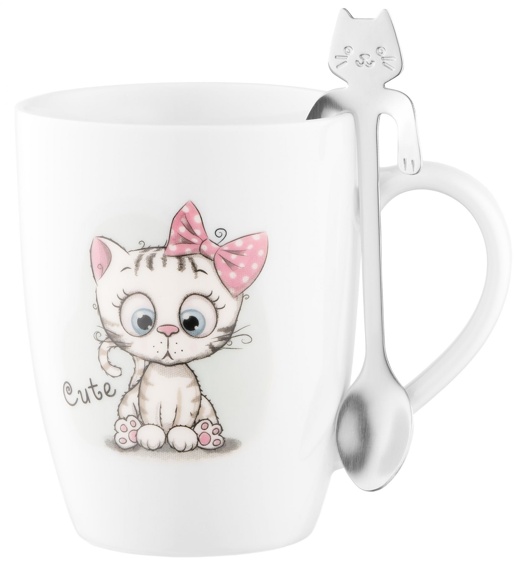 Чашка з ложкою ARDESTO Cute, 320мл, порцеляна, нержавіюча сталь, білий