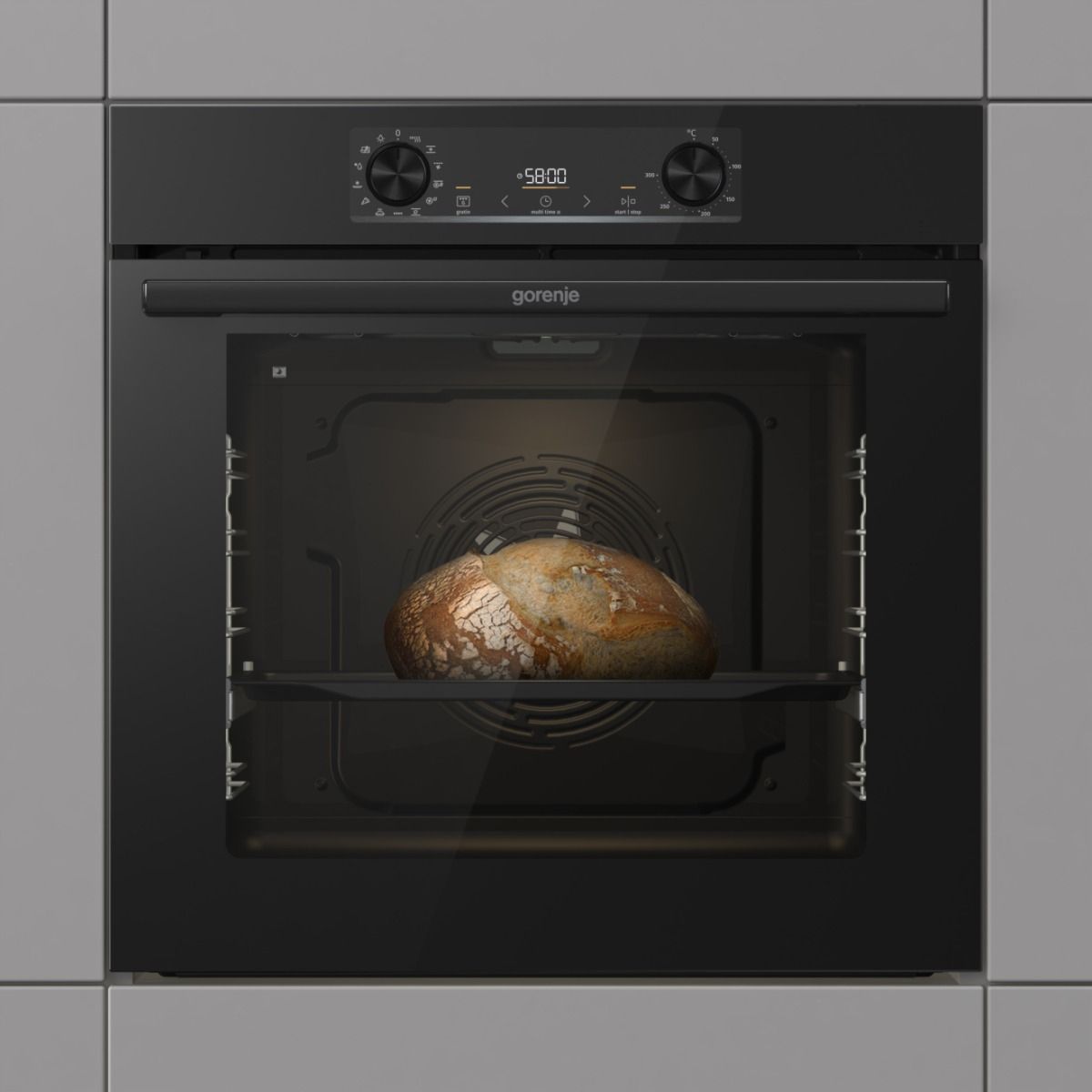 Gorenje BOP6373E28EBG — стильна вбудована електрична духовка об’ємом 77 л з енергетичним класом A+, оснащена піролітичним самоочищенням, IconLed-дисплеєм, функціями AirFry, FrozenBake та можливістю готувати на різних рівнях. Колір — чорний.