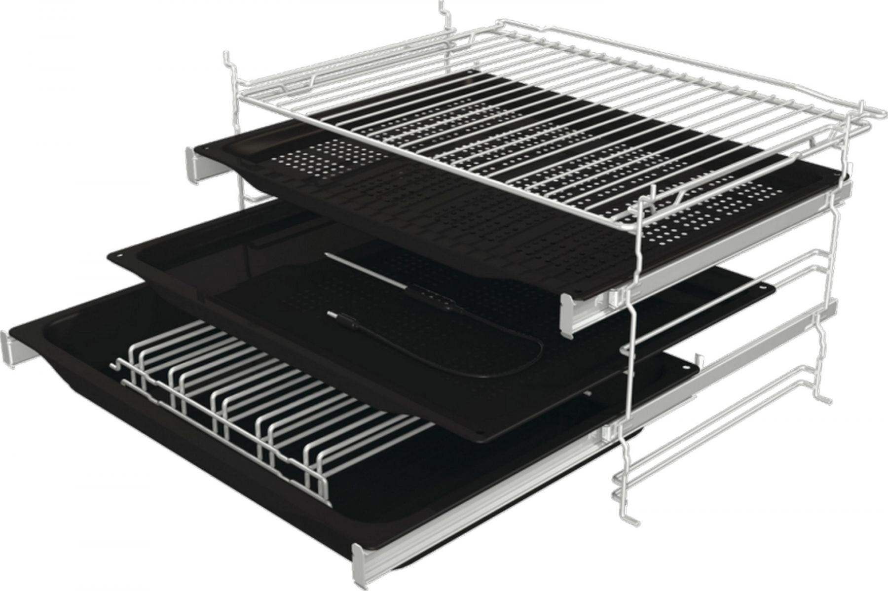 Комплектація:1 решітка, 1 глибоке емальоване деко, 1 мілке емальоване деко, 1 емальоване деко з перфорацією