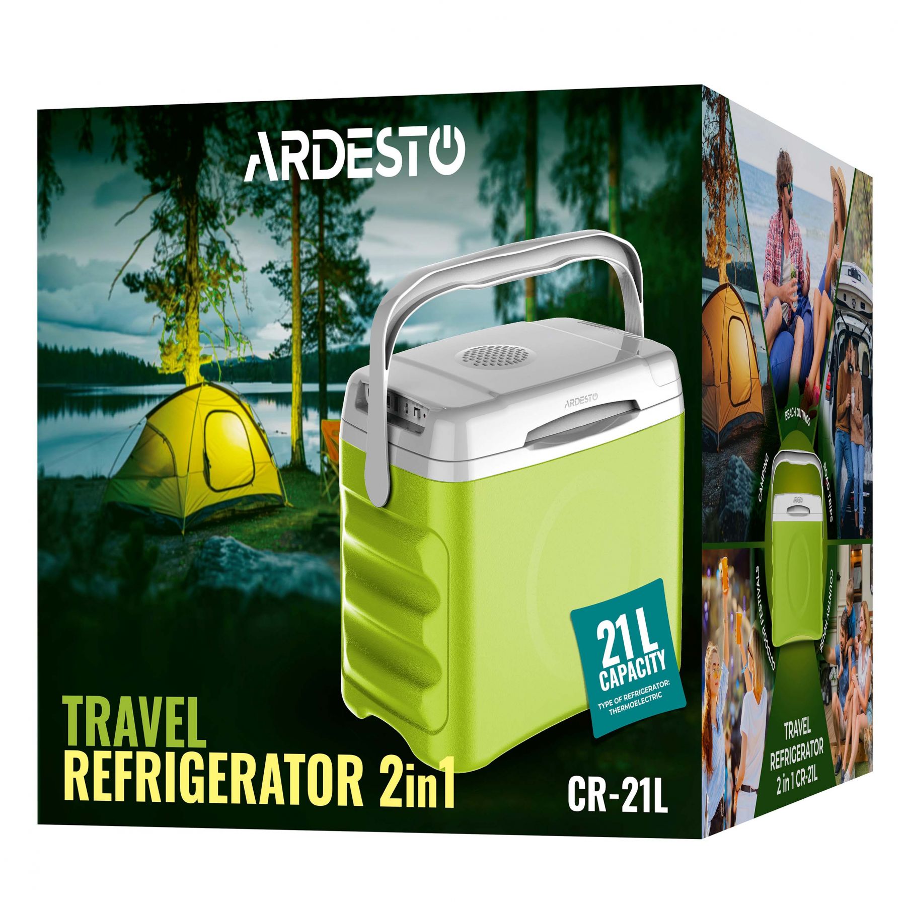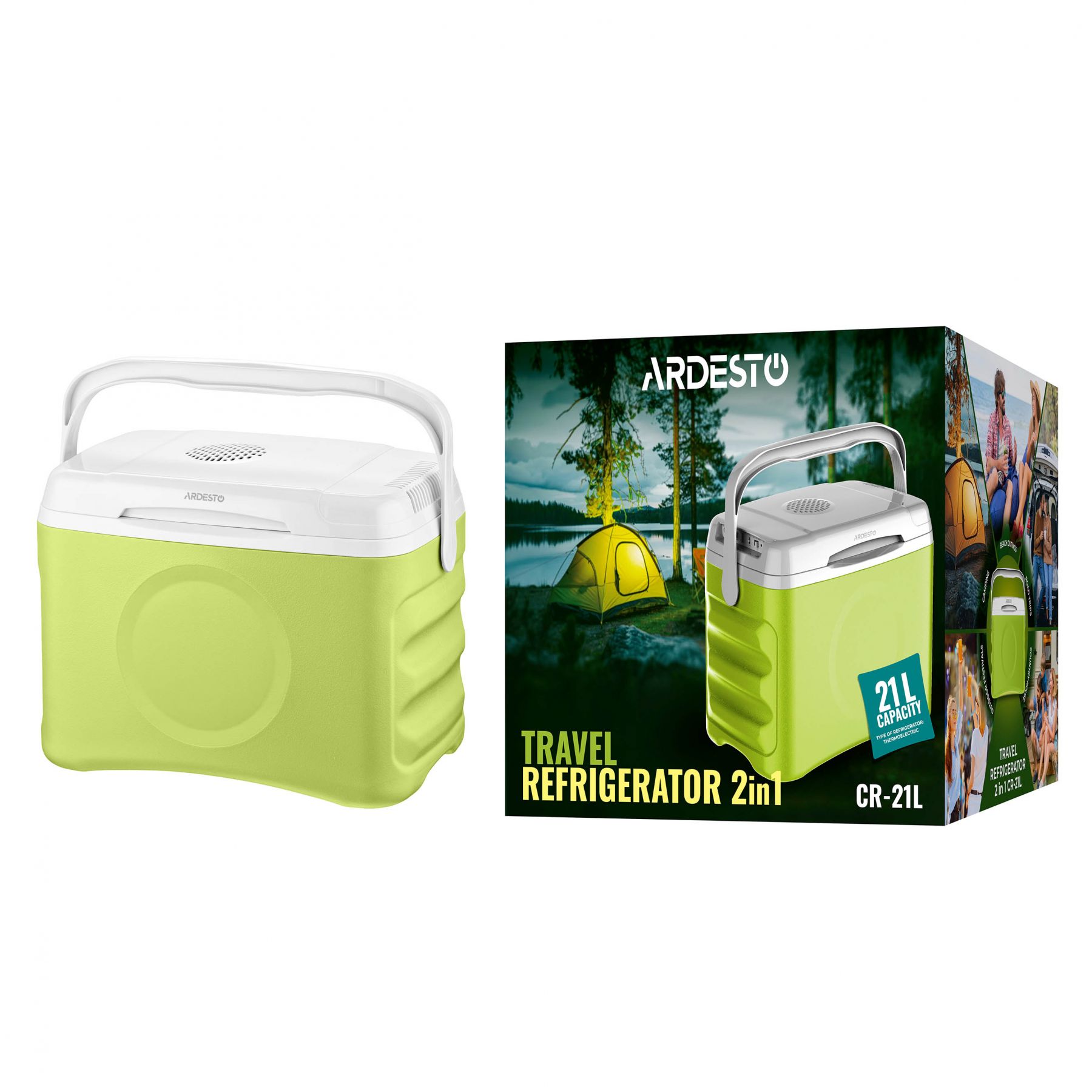 Холодильник дорожній ARDESTO, 2в1, 21л, 220/12В, підігрів 55°C, охолодження 18-20°C, USB-порт, 4.3кг, салатовий