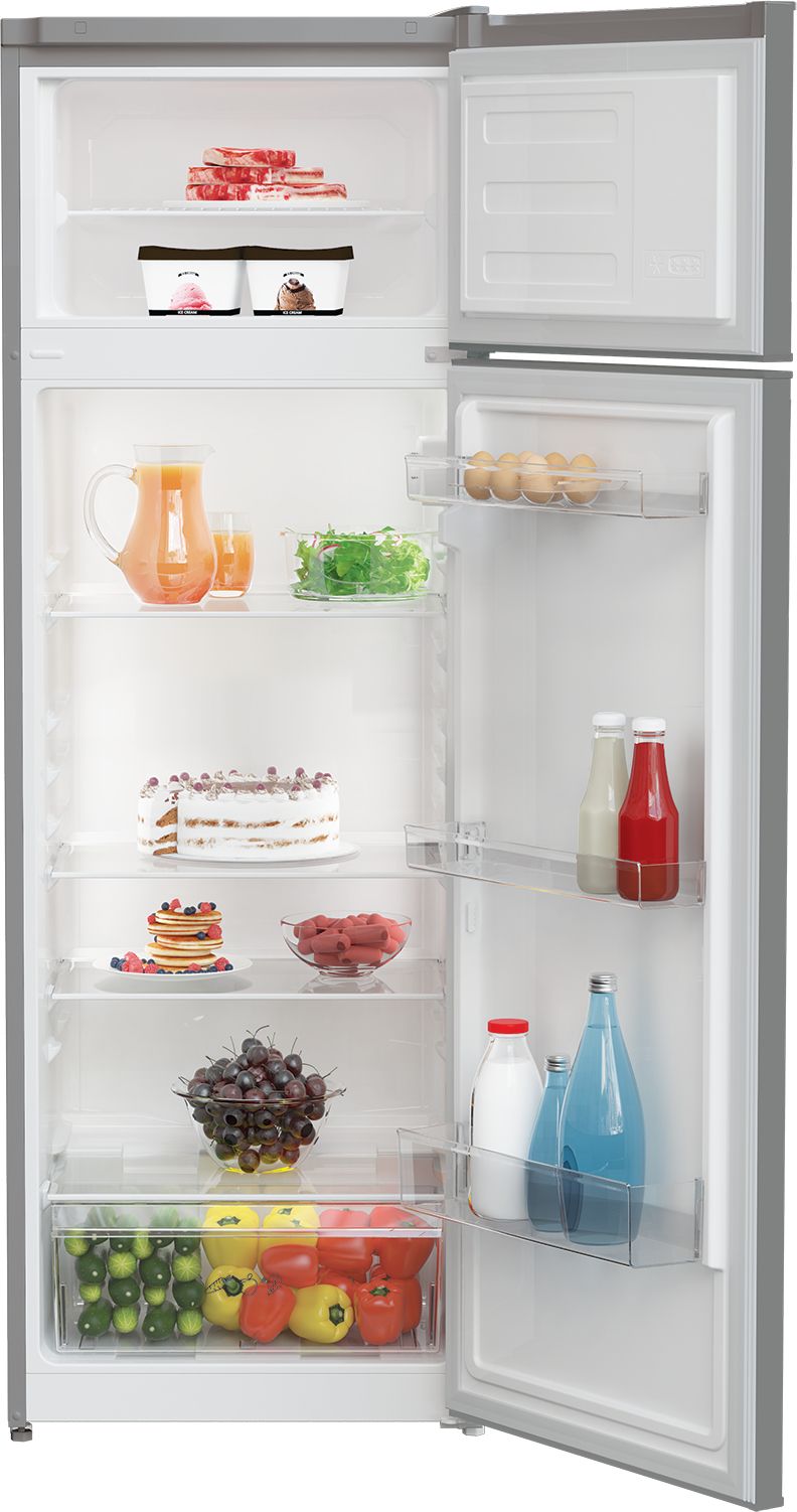 Холодильник Indesit I55T1612S — двокамерний пристрій сріблястого кольору з верхньою морозильною камерою, загальним об’ємом 250 л (204 л холодильна, 46 л морозильна). Клас енергоспоживання А++ з річним використанням 184 кВт·год, статична система охолодження та механічне управління. Розмір 160.6 × 54 × 57.4 см, рівень шуму 40 дБ, автономне збереження холоду до 16 годин. Двері перевешуються, полиці з загартованого скла, бокс свіжості та лоток для льоду. Кліматичний клас SN-ST для стабільної роботи в помірному кліматі.