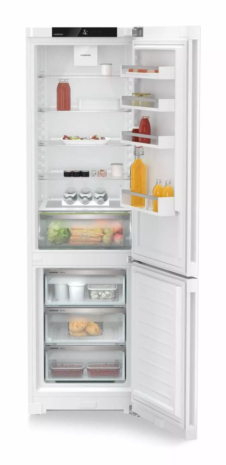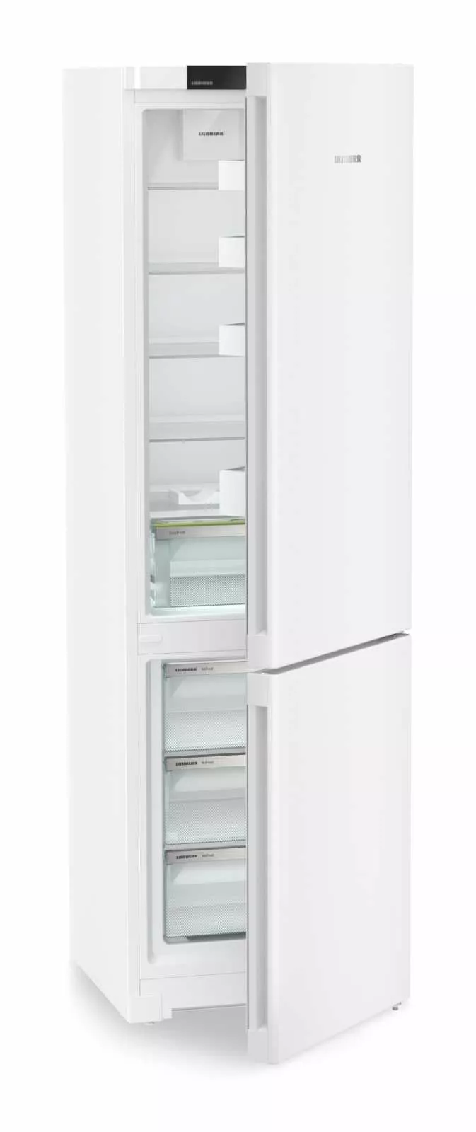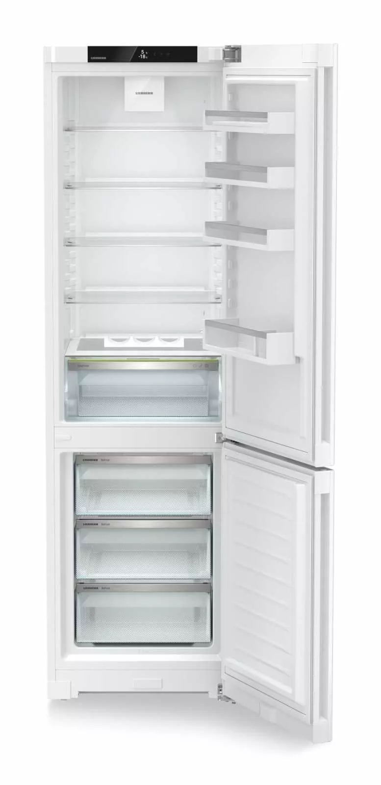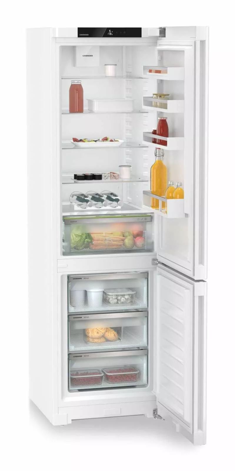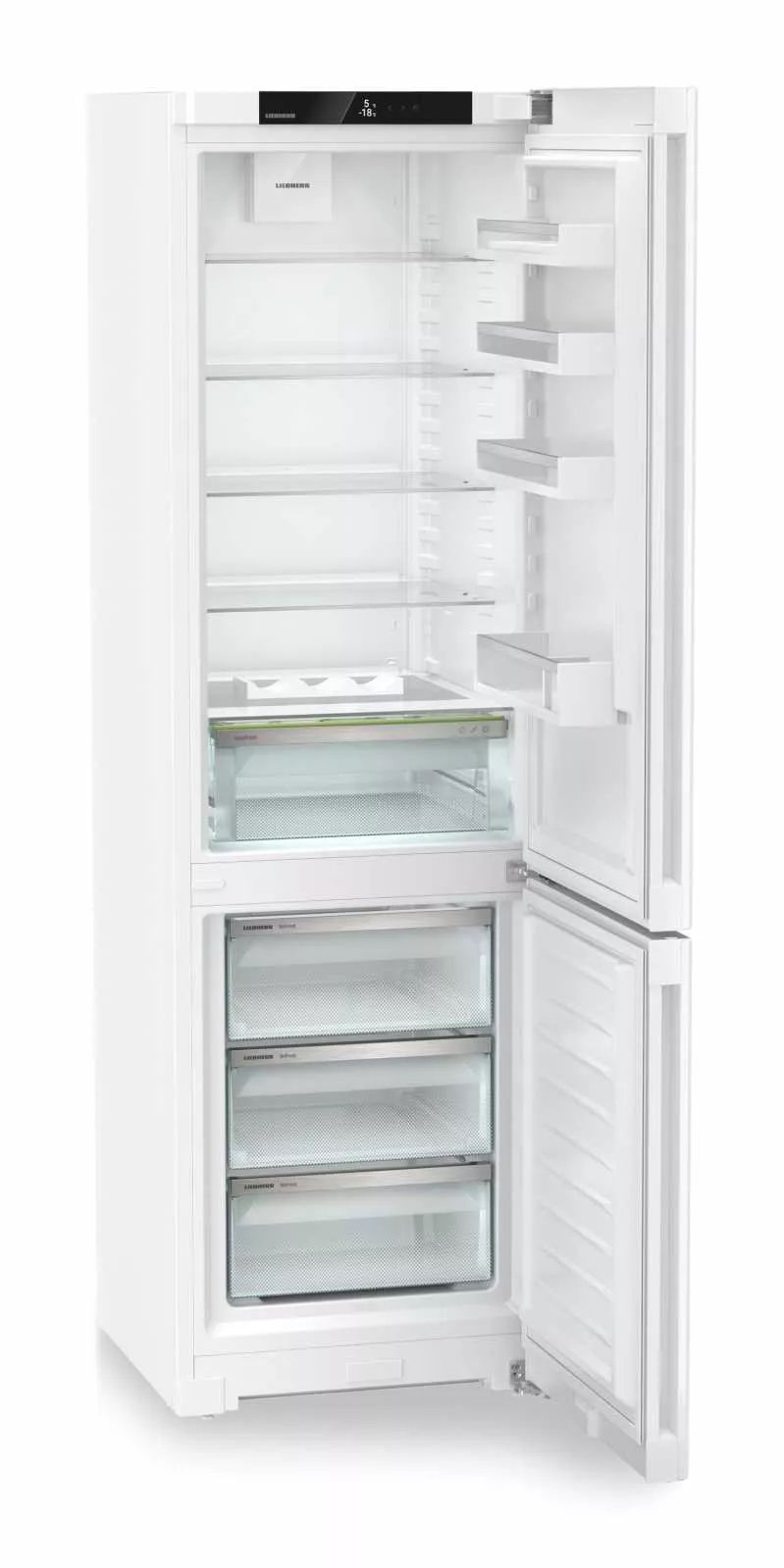 Двокамерний холодильник Liebherr CND5703 — це сучасна модель з об'ємом 360 літрів, яка поєднує в собі високу енергоефективність та інноваційні технології для зберігання продуктів. Холодильник має систему NoFrost, яка усуває потребу в ручному розморожуванні, а технологія DuoCooling забезпечує незалежне керування температурою в холодильній і морозильній камерах, що запобігає змішуванню запахів. Інші корисні функції включають SuperCool і SuperFrost для швидкого охолодження та заморожування, а також відділення EasyFresh, яке зберігає свіжість овочів і фруктів.