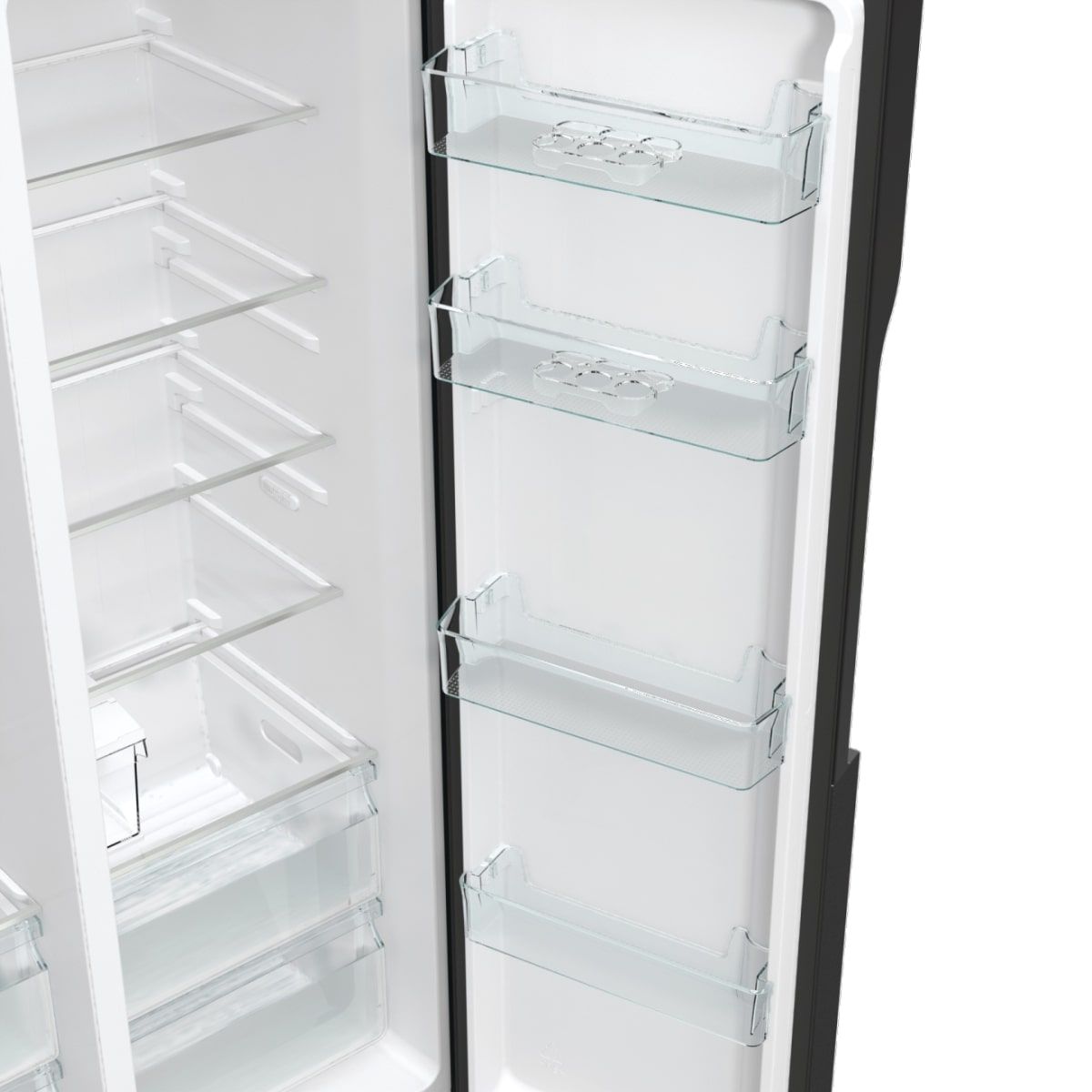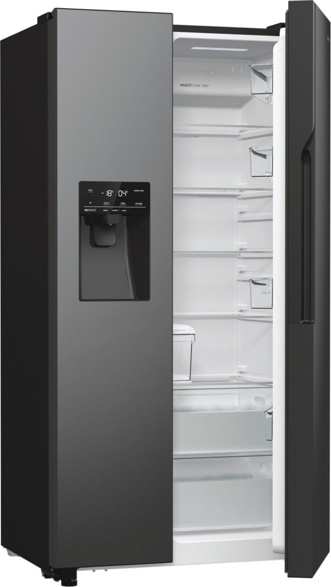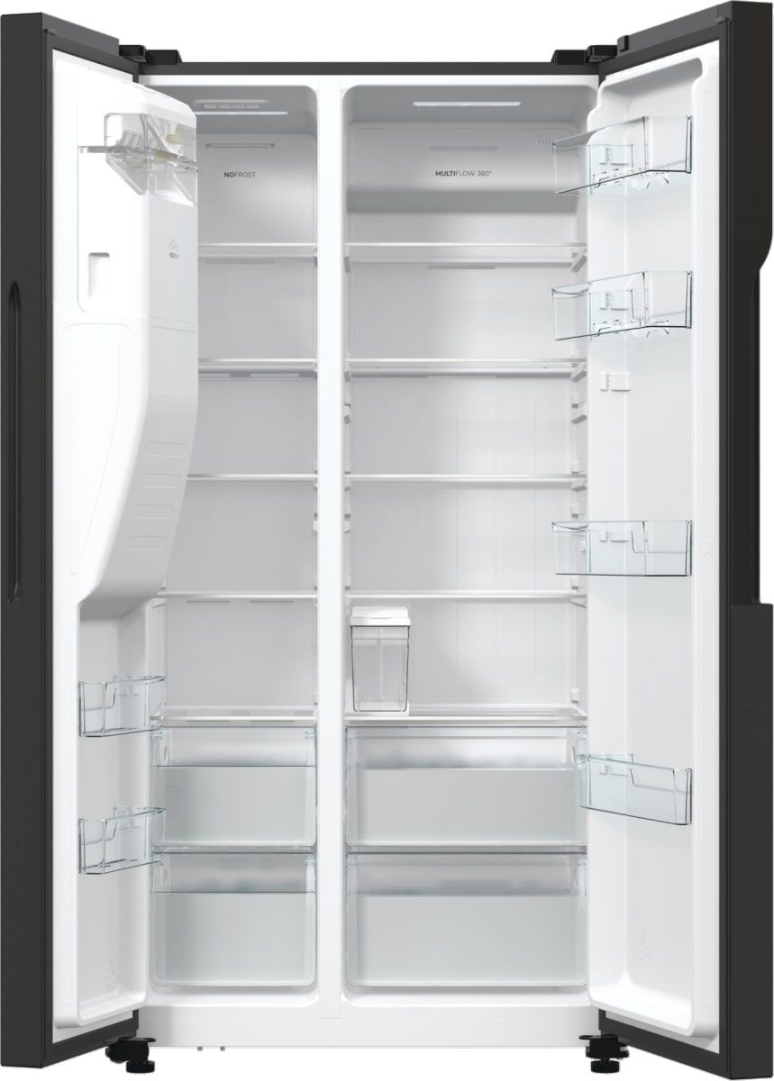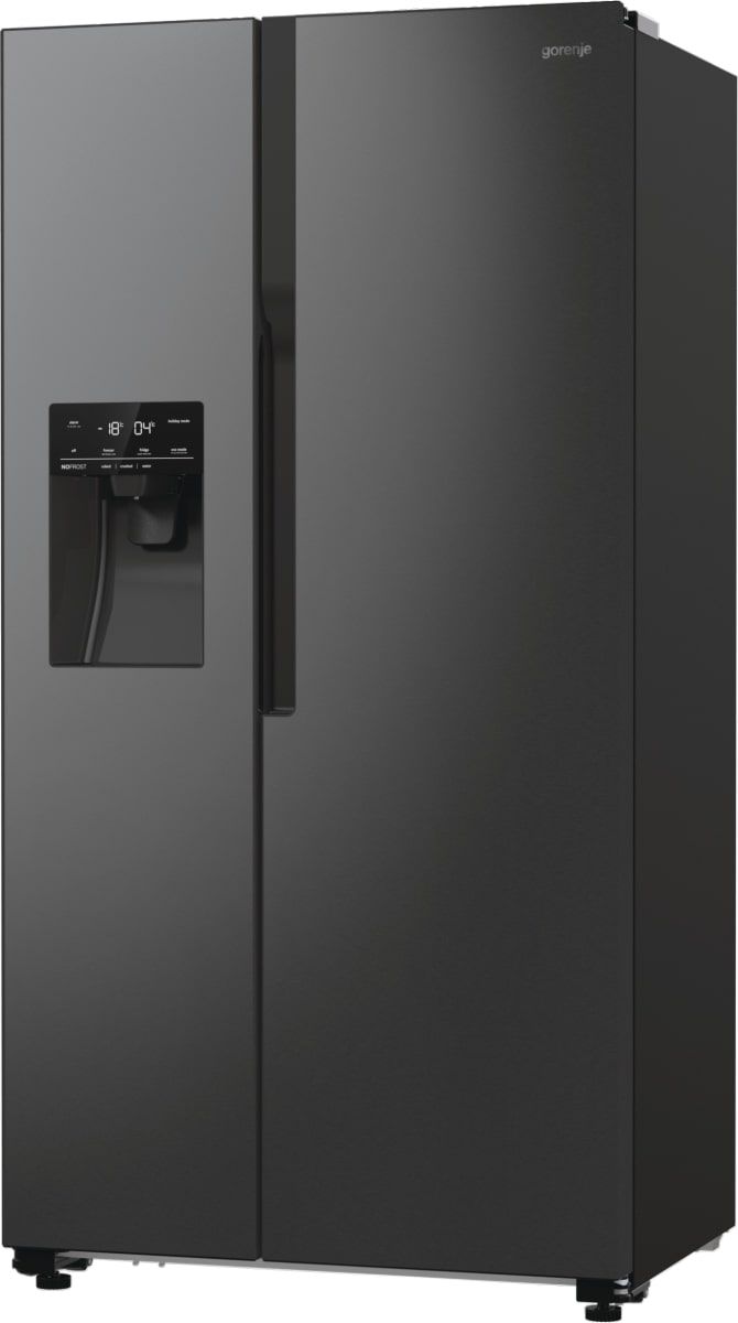 Холодильник SBS Gorenje, 179х70х92см, 2 двері, 376(190)л, А++, NF+, Інв., Зона св-ті, диспенсер, генератор льоду, Зовн. Диспл, чорний