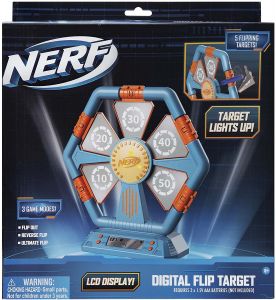 Особливості:Світлові ефекти, звукові ефекти, одиночний режим, режим для декількох користувачів, 3 режими гри, цифрове табло, мішень сумісна з більшістю бластерів NERF, регульована підставка