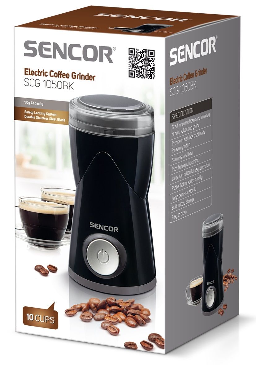 За допомогою кавомолки Sencor SCG 1050 потужністю 150 Вт надається можливість не тільки насолодитися відмінною кавою, а й ще подрібнювати волоські горіхи, злаки, насіння маку і спеції. Кавомолка компактна, легка в експлуатації, має стильний дизайн, корпус виконаний з міцного пластику. Це надійне кухонне обладнання прослужить протягом тривалого часу без найменших нарікань або неполадок.