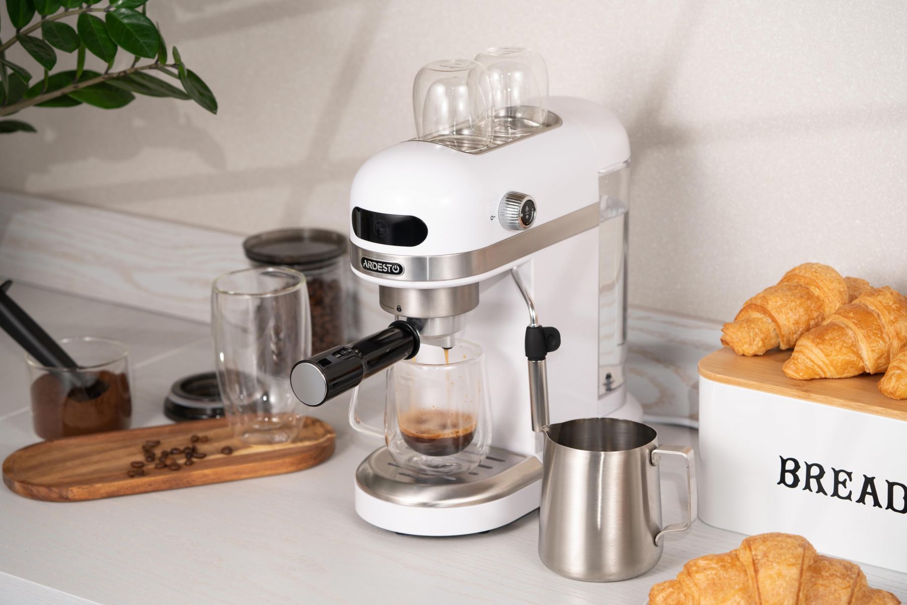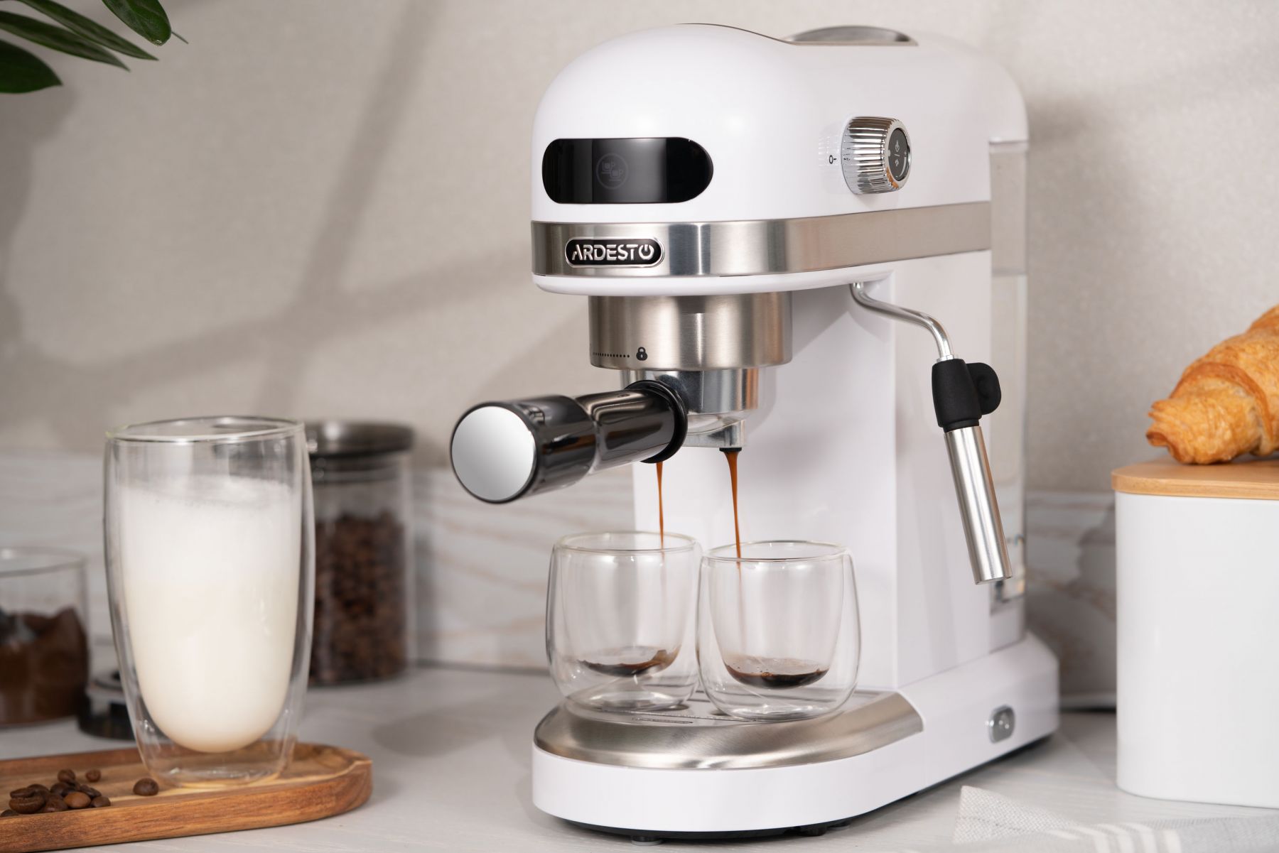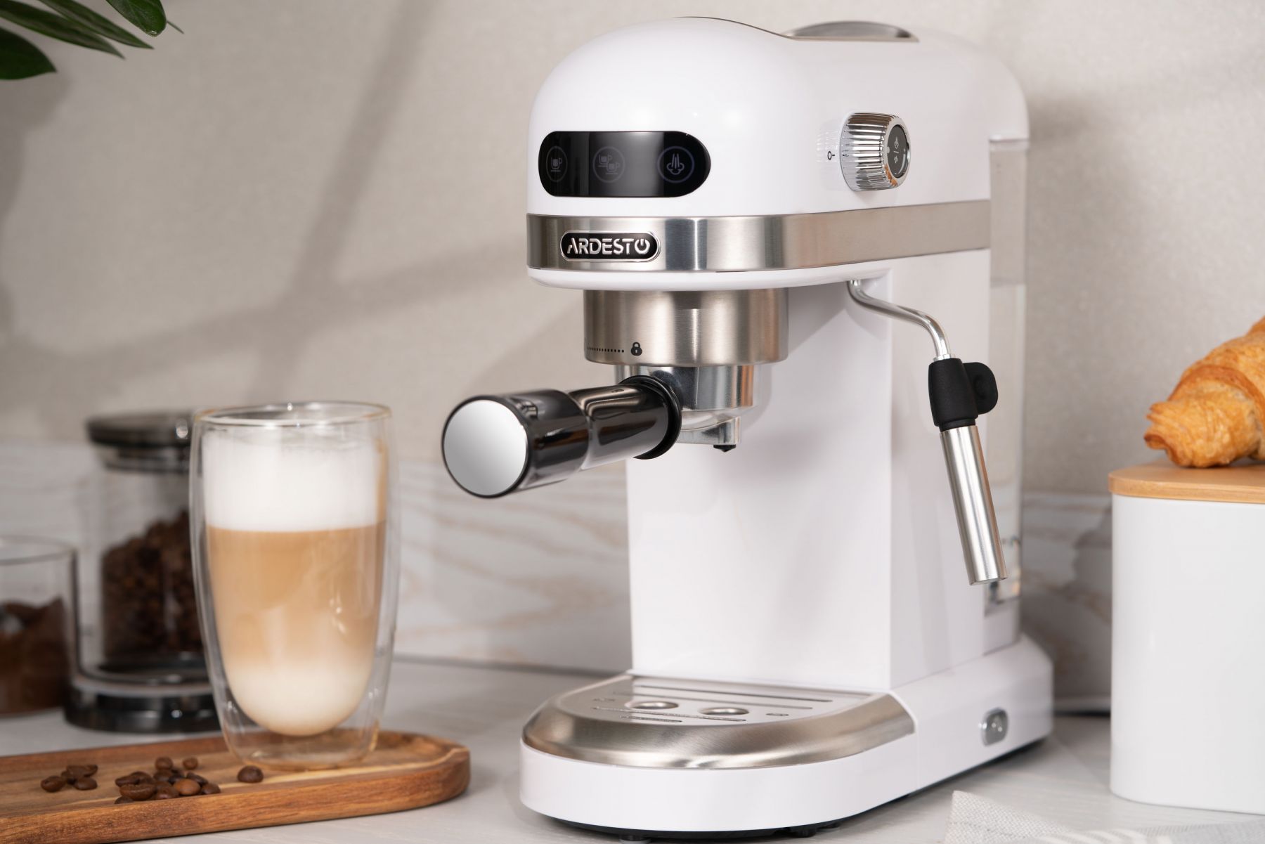 Кавоварка ARDESTO ріжкова 1.4л, мелена, ручний капучинатор, підігрів чашок, білий