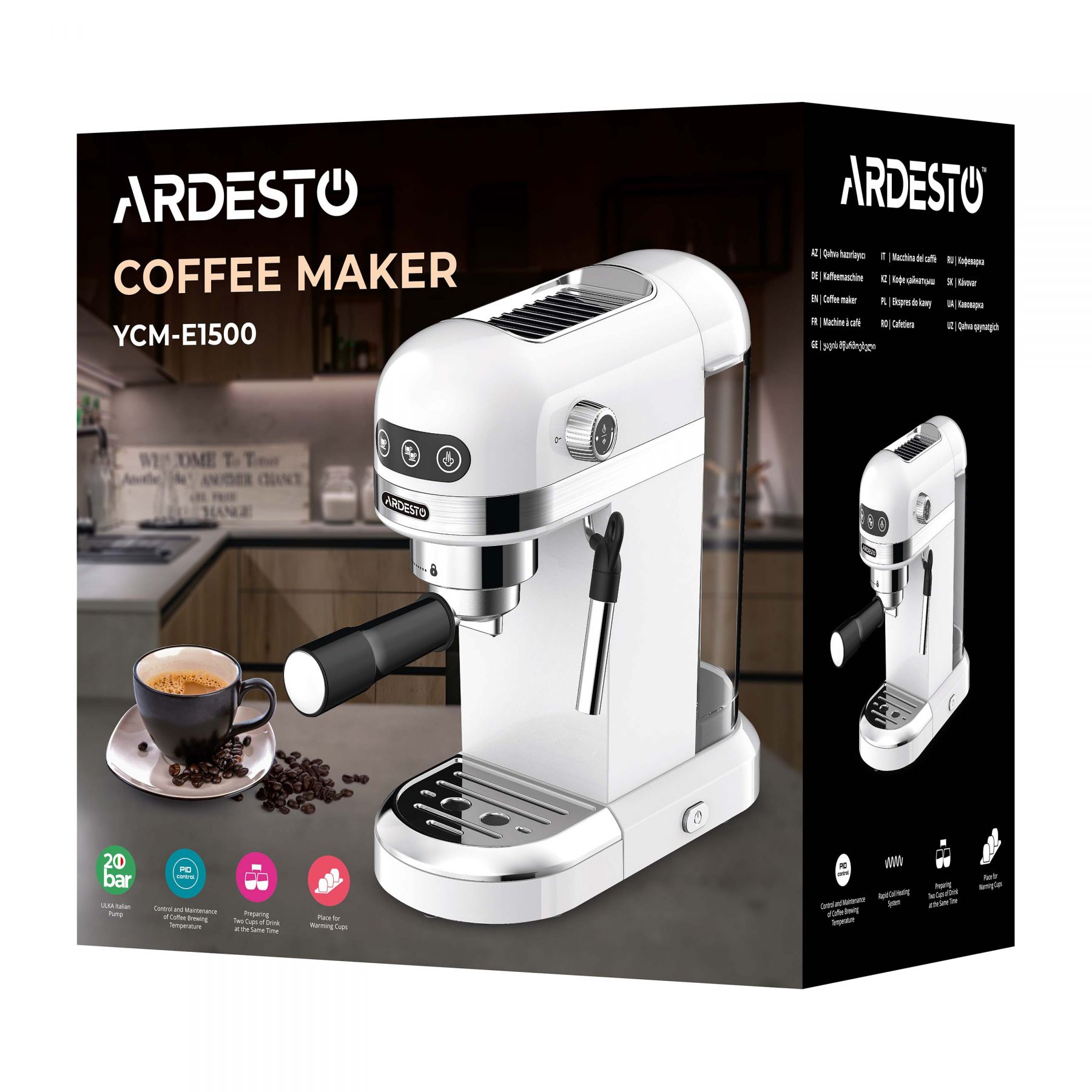 Починайте кожен ранок із горнятка кави завдяки кавоварці ARDESTO. Ріжкова YCM-E1500 виконана в елегантному білому кольорі й має капучинатор, тож куштувати смачне лате відтепер можна не лише в кав’ярні, а й сидячи на власній кухні. Пристрій має PID-контролер, який керує температурою приготування кави, з огляду на це якісно приготувати напій зможе навіть користувач без навичок кавоваріння.