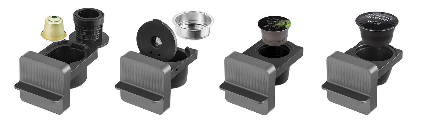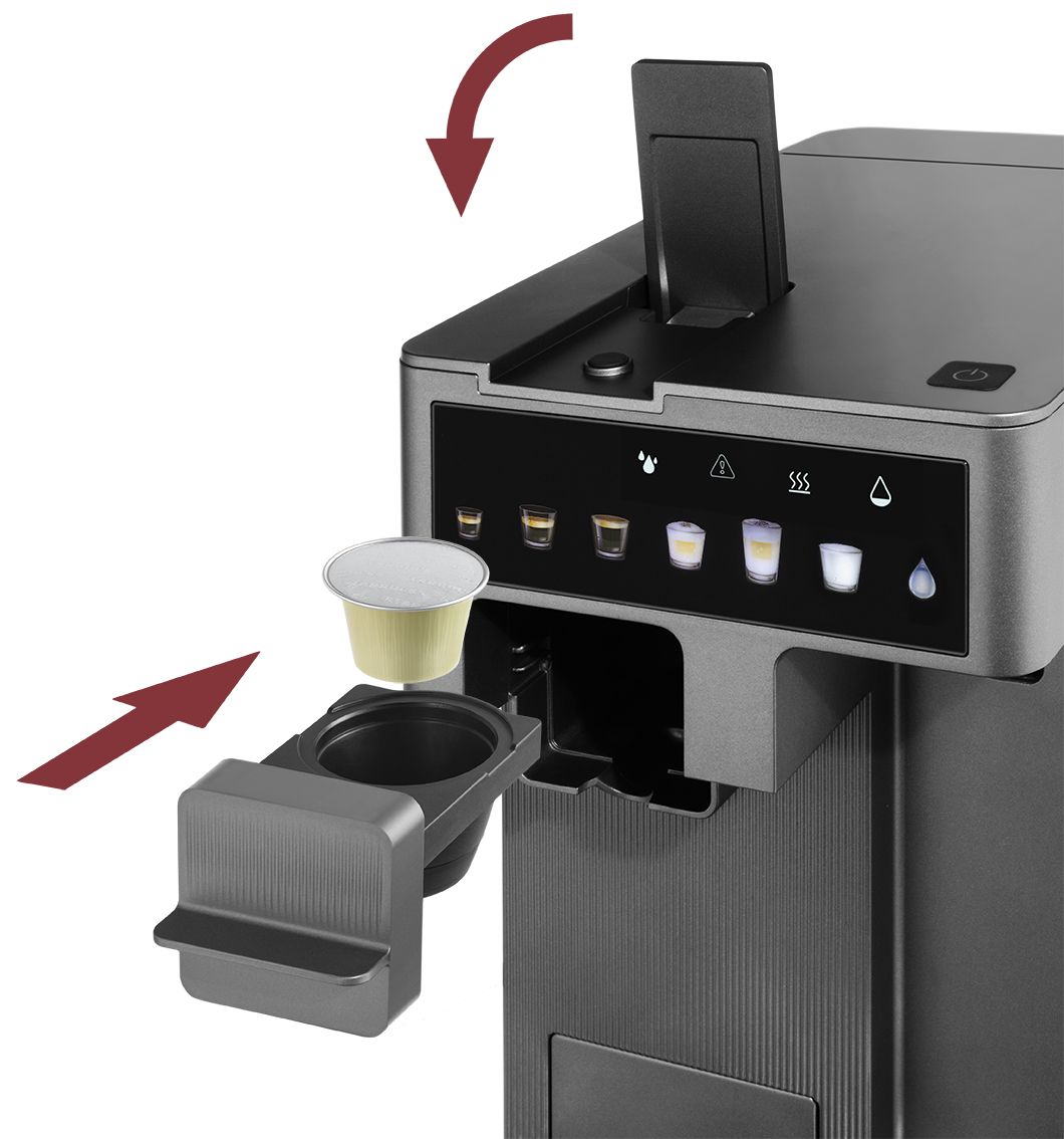 Особливості:автоматичний капучинатор, 3 адаптери для більшості звичайних кавових капсул, 3 розміри чашки, перехідник для меленої кави