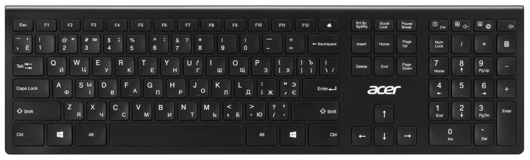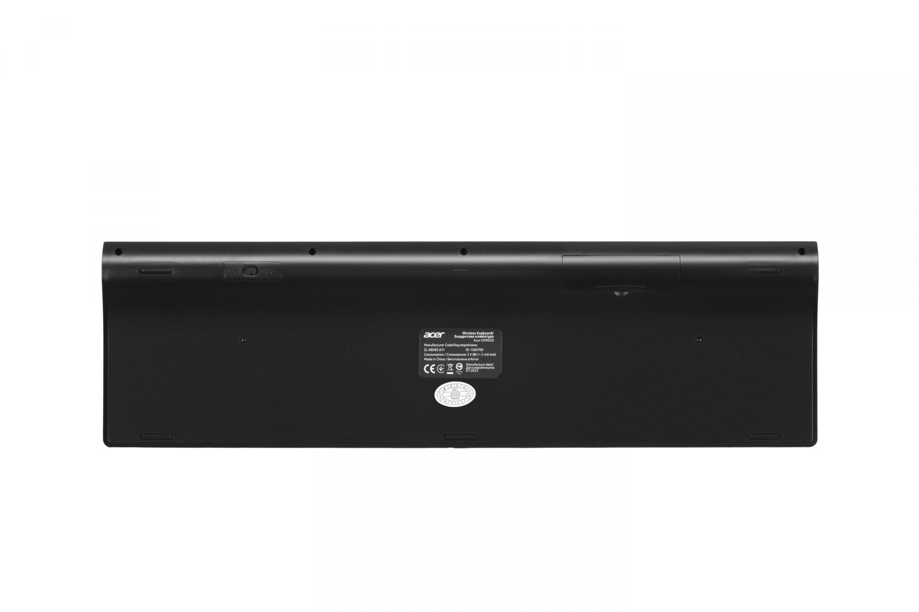 Клавіатура ACER OKR020 має класичний дизайн, чорний колір добре підходить для офісу та для дому. Клавіатура має конструктивне рішення зі стандартним розташуванням усіх клавіш, що сприяє їхньому швидкому запам'ятовуванню та зручній роботі. Відстань між клавішами невелика, що дає змогу плавно набирати текст, не боячись натиснути 2 клавіші відразу. Кнопки невисокі та мають хороший хід. Клавіатура має бездротове підключення і зв'язується з комп'ютером через радіоканал. Невеликий приймач підключається через інтерфейс USB. Клавіатура ACER OKR020 обладнана 4 спеціальними мультимедійними клавішами.