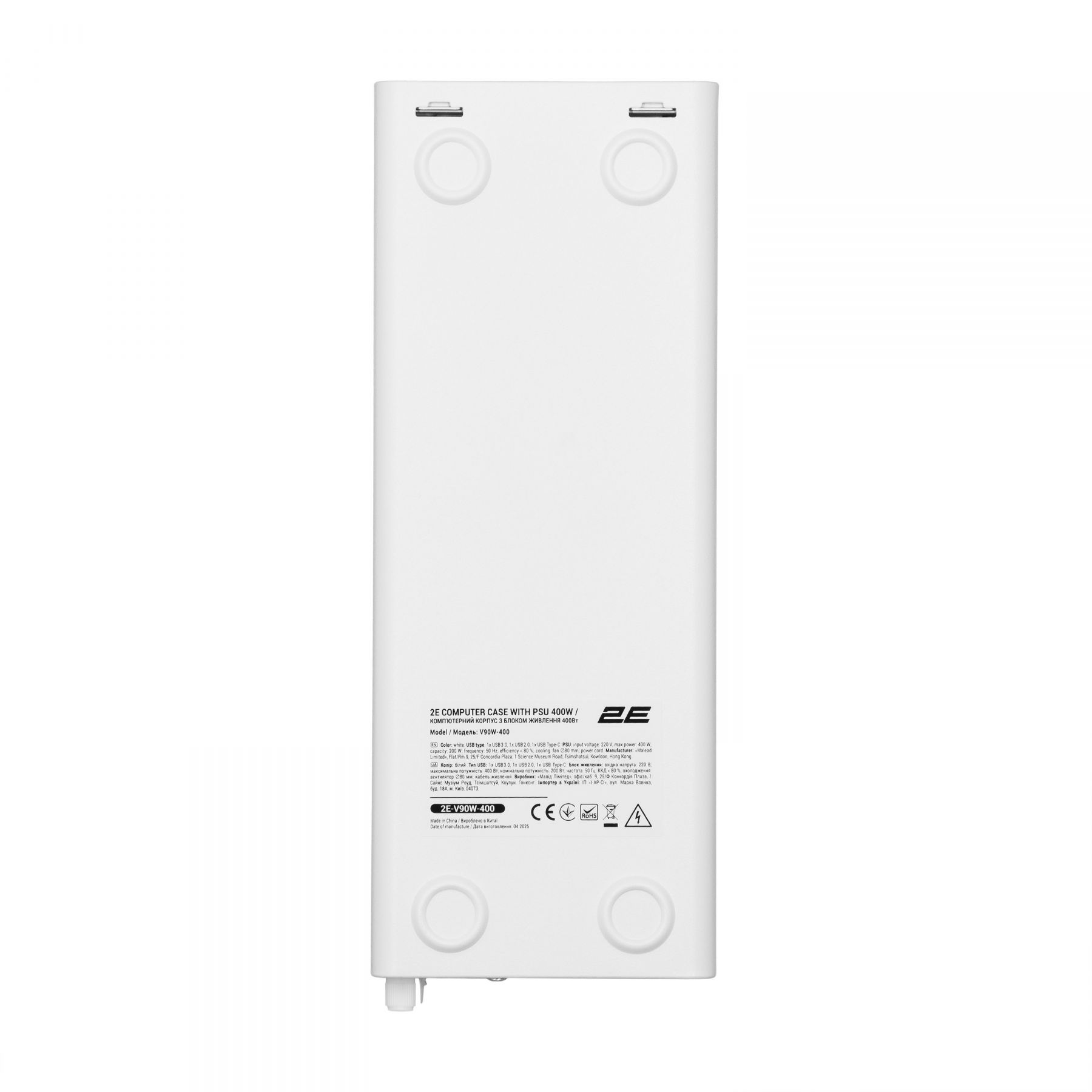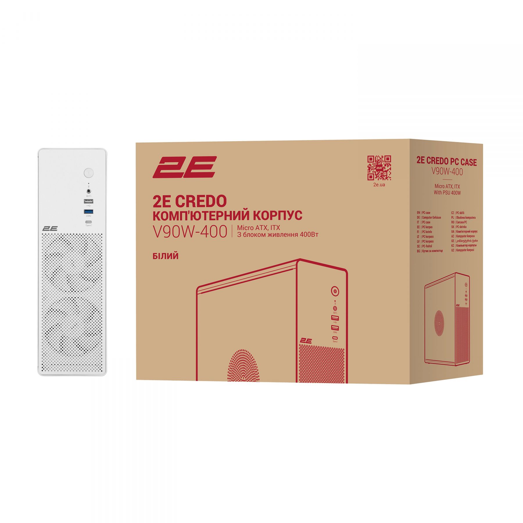 Корпус 2E Credo Slim V90W-400 з БЖ 2E TFX400, 1xUSB3.0, 1х USB 2.0, 1xUSB Type-C, 2x90мм, VGA 220мм, mATX, білий