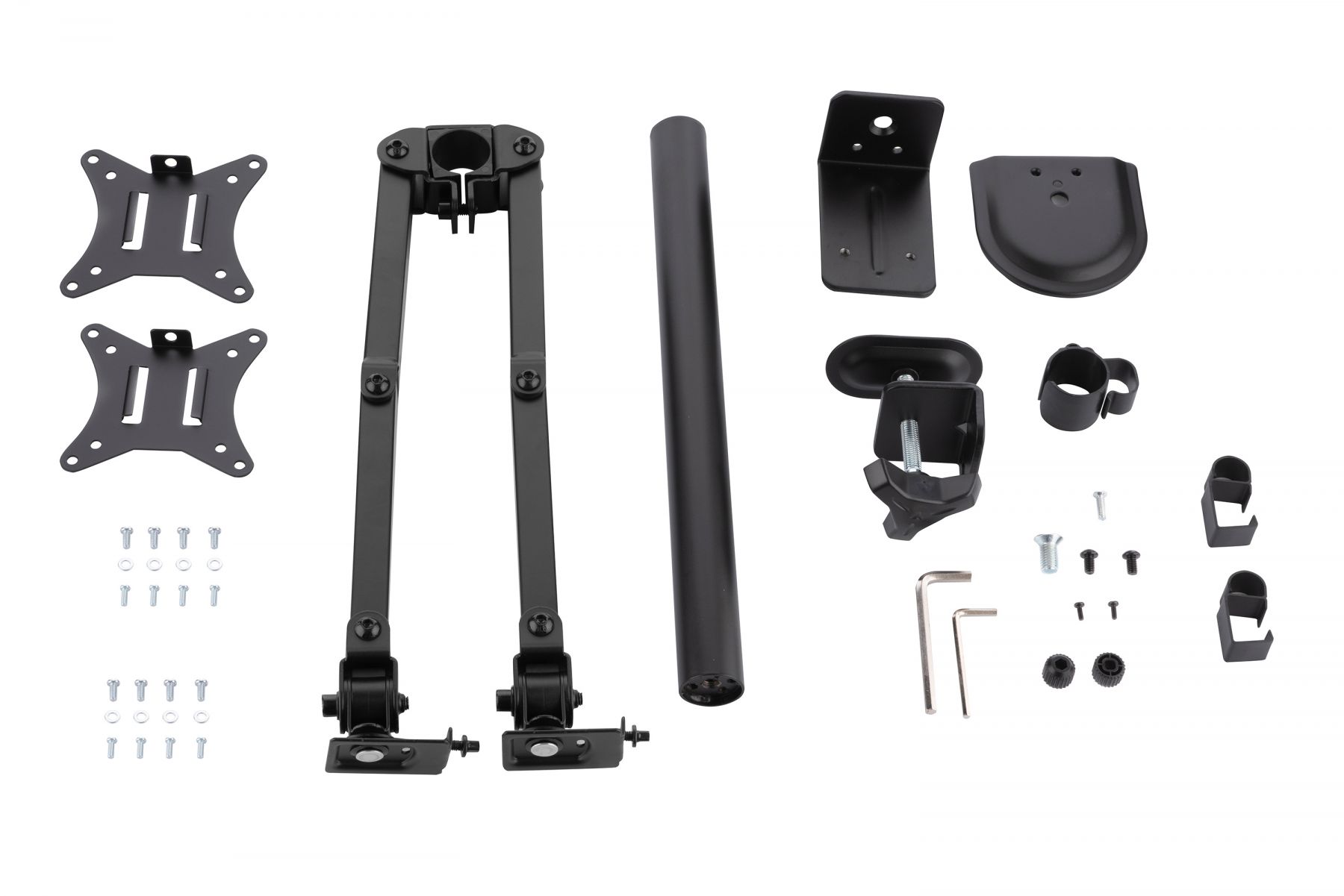 Кріплення для монітора настільне 2Е «Рейкіфе» матового чорного кольору. Міцну конструкцію виготовлено зі сталі та пластику. Призначено для двох екранів діагоналлю 17-32″ і вагою від 2 до 9 кг. Зручний і надійний кронштейн сумісний із 75 × 75, 100 × 100, передбачено швидкознімну пластину.