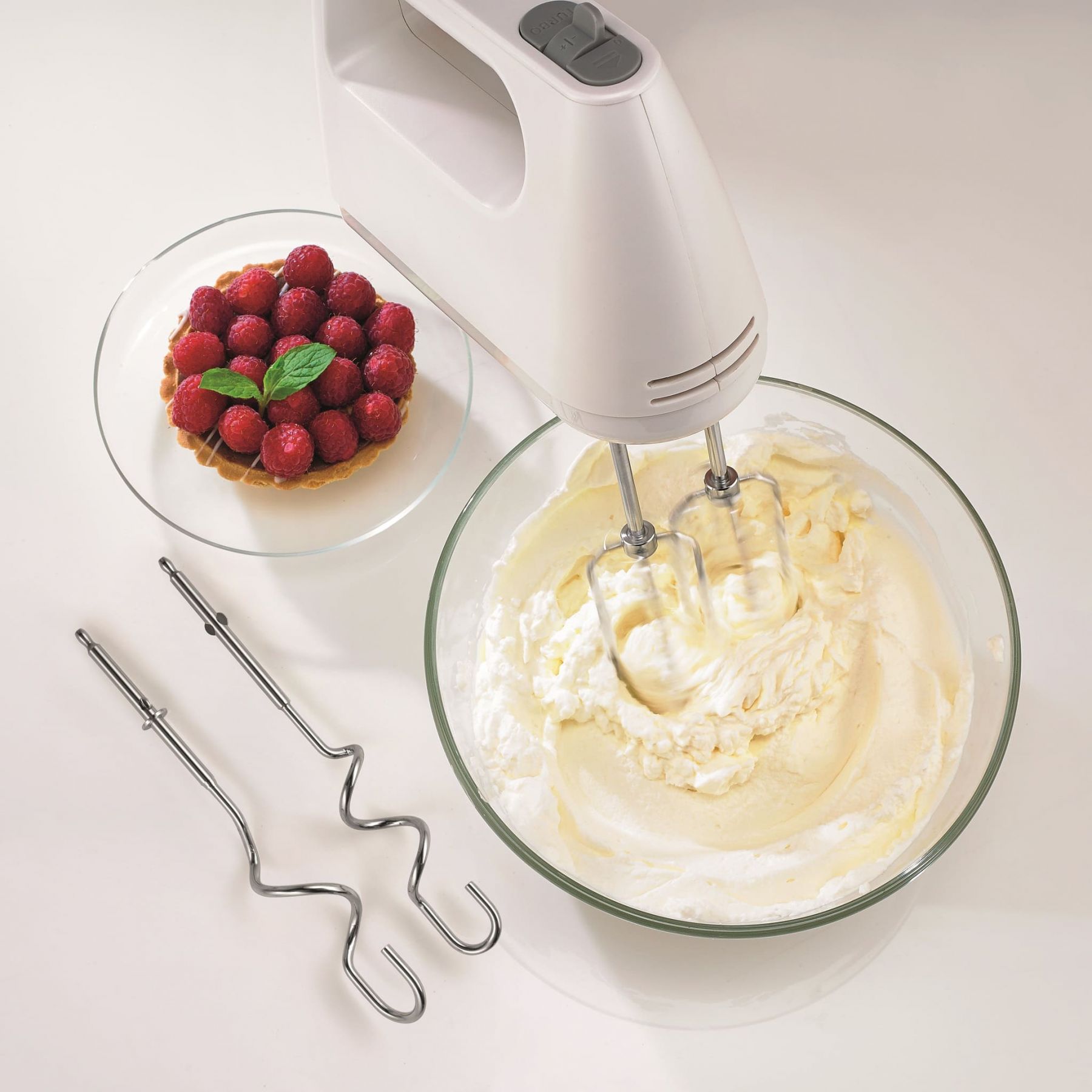Ручний міксер Gorenje M360CW має 345 Вт потужності та 5 різних швидкостей. Цей міксер досить потужний, щоб отримати бажані результати. Комфортна ергономічна ручка дозволяє зручно утримувати міксер, а всі насадки можна легко мити в посудомийній машині.