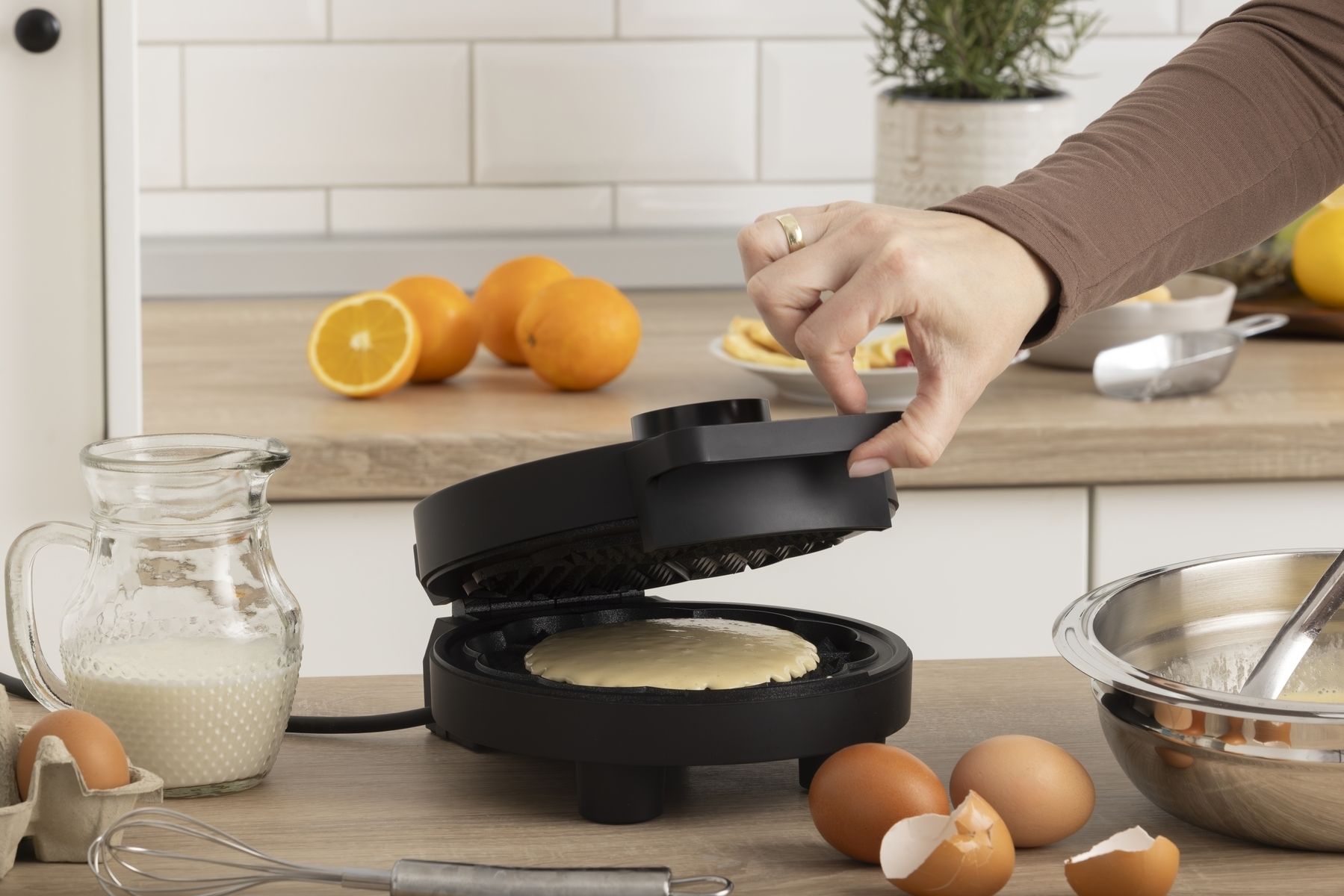 Міні-гриль Gorenje WM1000B потужністю 1000 Вт — це компактний помічник для приготування вафель та інших страв. Алюмінієві пластини з антипригарним покриттям забезпечують рівномірне випікання без прилипання. Оснащений індикатором температури, регулятором нагріву та нековзкими ніжками. Корпус із лакованого металу надійний і стійкий до нагрівання.