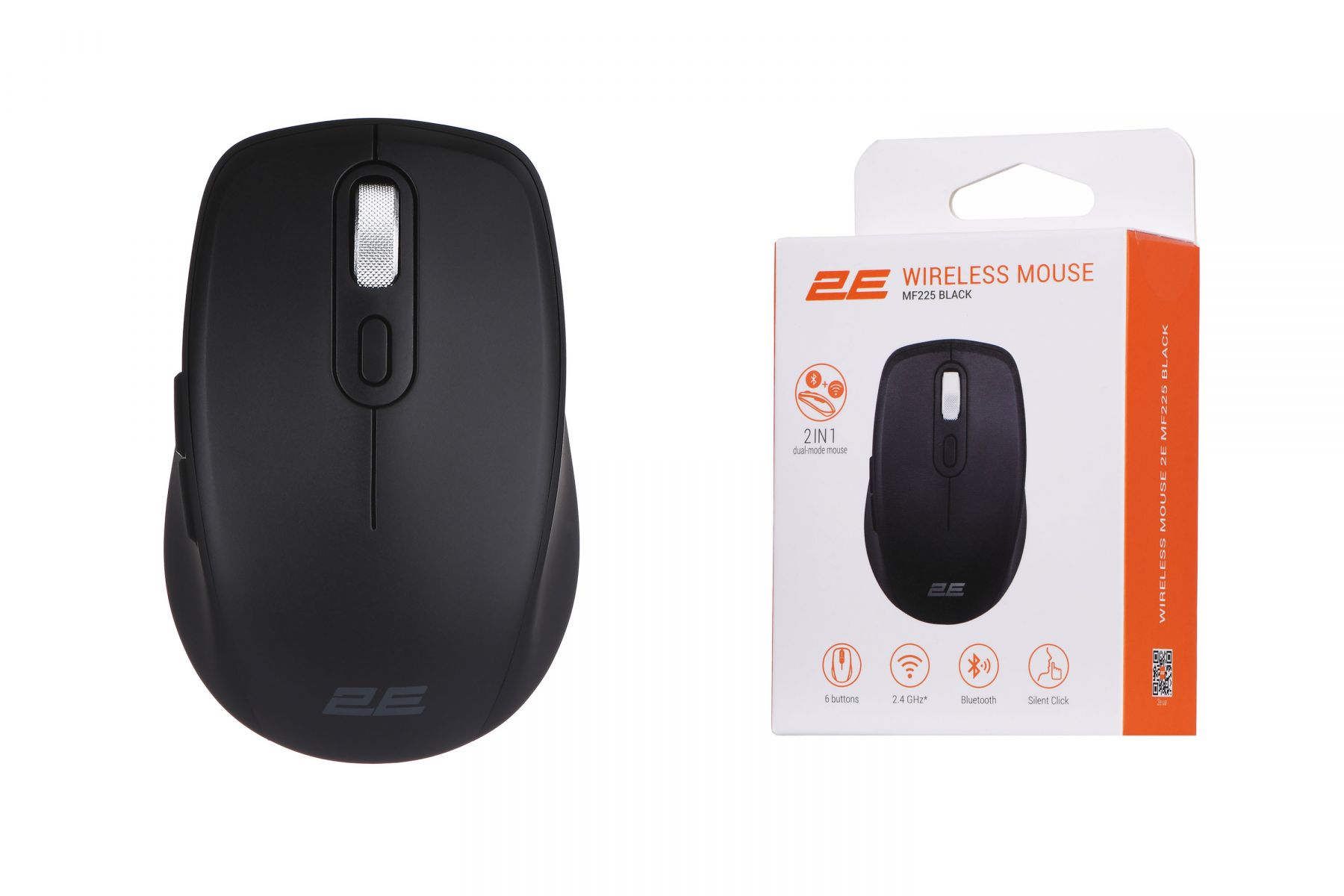Безшумна компактна миша виконана в стильному корпусі, що поєднує глянцеві плавні лінії та м’яке Soft touch покриття. Оснащена 6 функціональними кнопками для більшої зручності використання, а 3 режими DPI дають можливість налаштування під індивідуальні потреби. Підключається до ПК/ноутбуку через адаптер 2.4 Ггц або Bluetooth. Завдяки невеликій формі модель MF225 чудово підійде для подорожей та мобільної роботи.