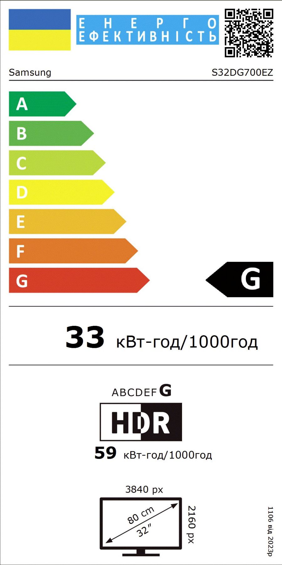 Монітор Samsung 32" S32DG700E HDMI, DP, USB, Bluetooth, IPS, 3840x2160, 144Hz, 1ms, G-Sync Compatible