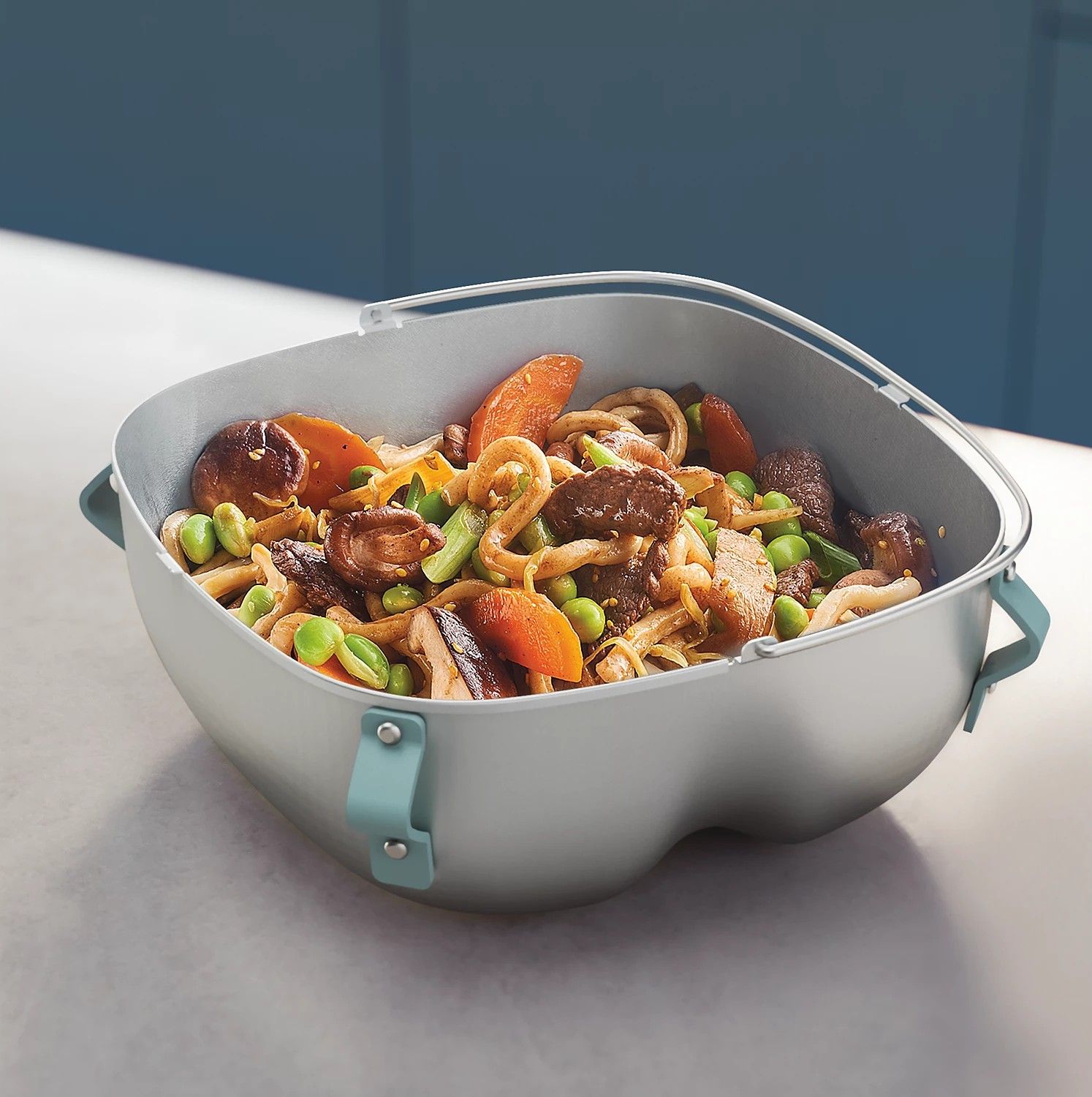 Особливості:Можна мити в посудомийній машині, Вок-сковорода для обсмажування та пасерування, Функція пароварки з використанням спеціальної кришки, Система «підкидання без розсипання»