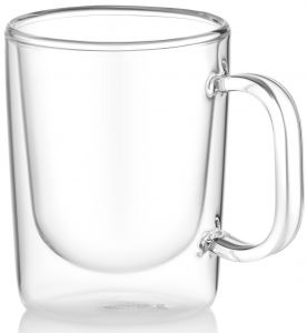 Чашки з подвійними стінками – це насолода для поціновувачів естетики та практичності. Вони надзвичайно міцні та легкі, витримують температуру від -20 до +150 °C. Їх можна використовувати як піали або креманки для морозива. Завдяки особливій конструкції здається, що напої та десерти в них парять у повітрі.