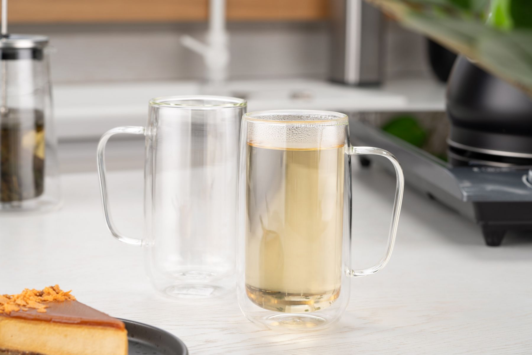 Набір чашок з ручками і подвійними стінками Ardesto, 400мл, 2шт, боросилікатне скло, прозорий