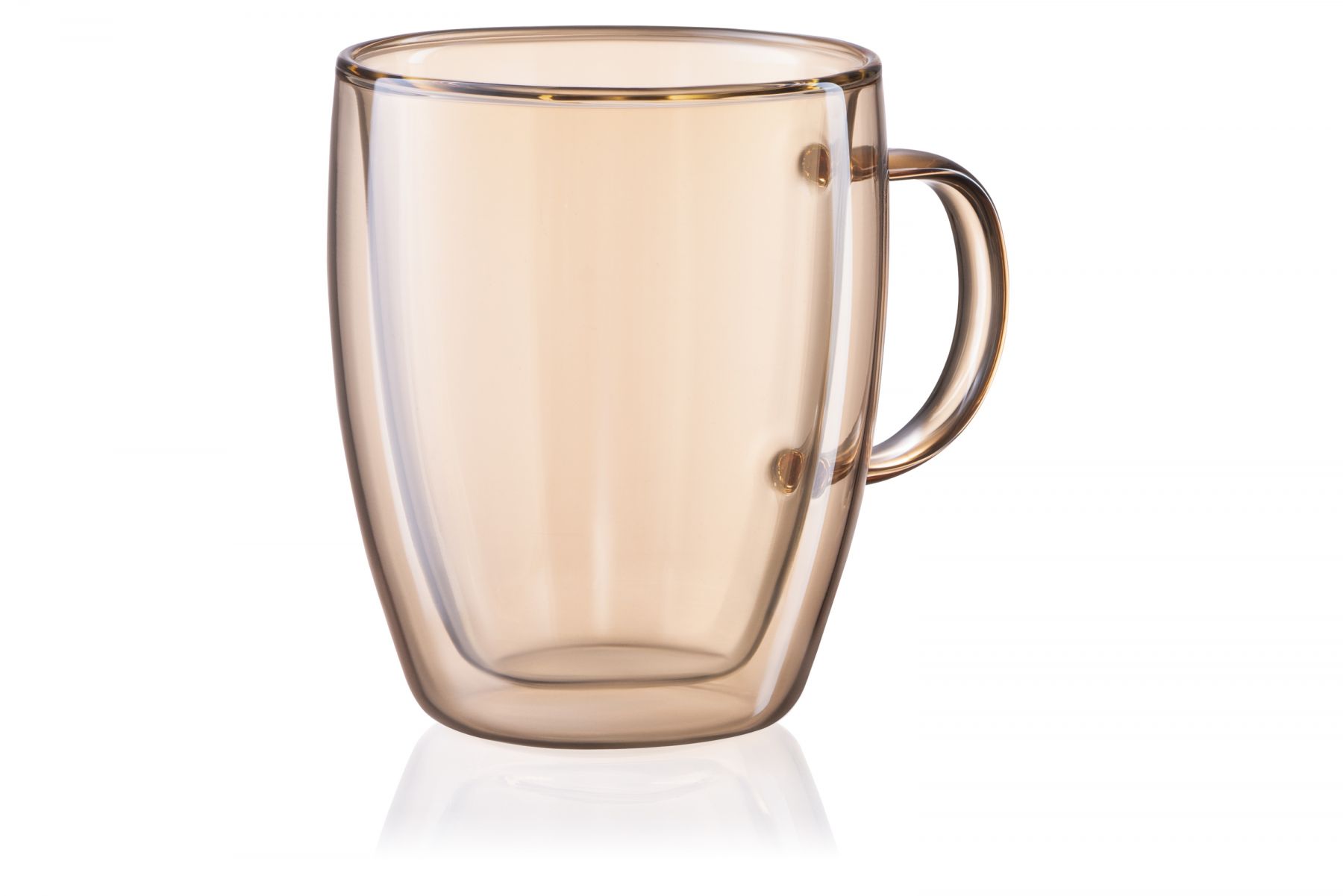 Набір чашок з ручками і подвійними стінками Ardesto Golden Moon, 270мл, 2шт, боросилікатне скло, золотистий