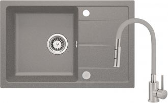 Набір для кухні Deante Leda, гранітна мийка ZRD_S113 + зміш. BOC_S740, сірий металік