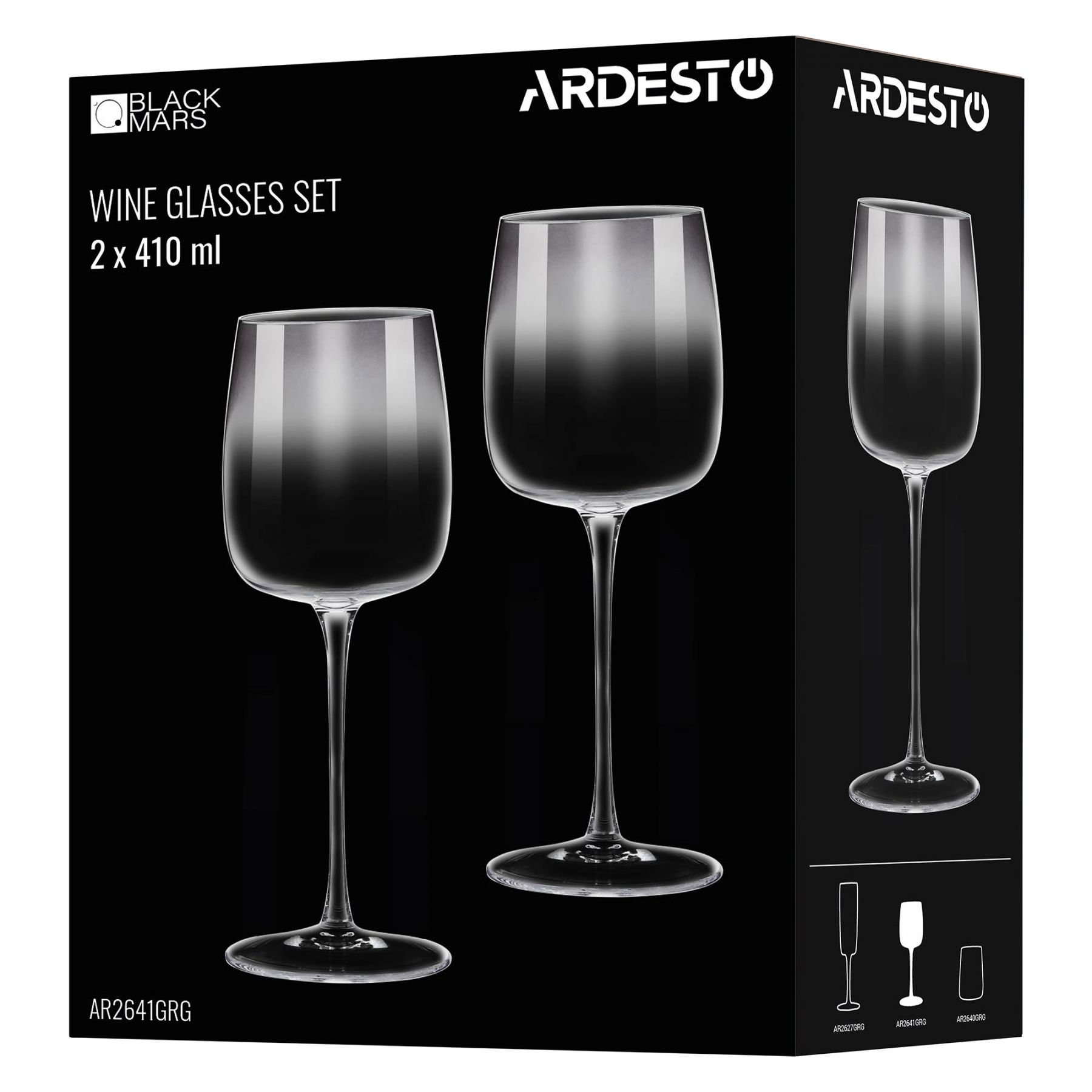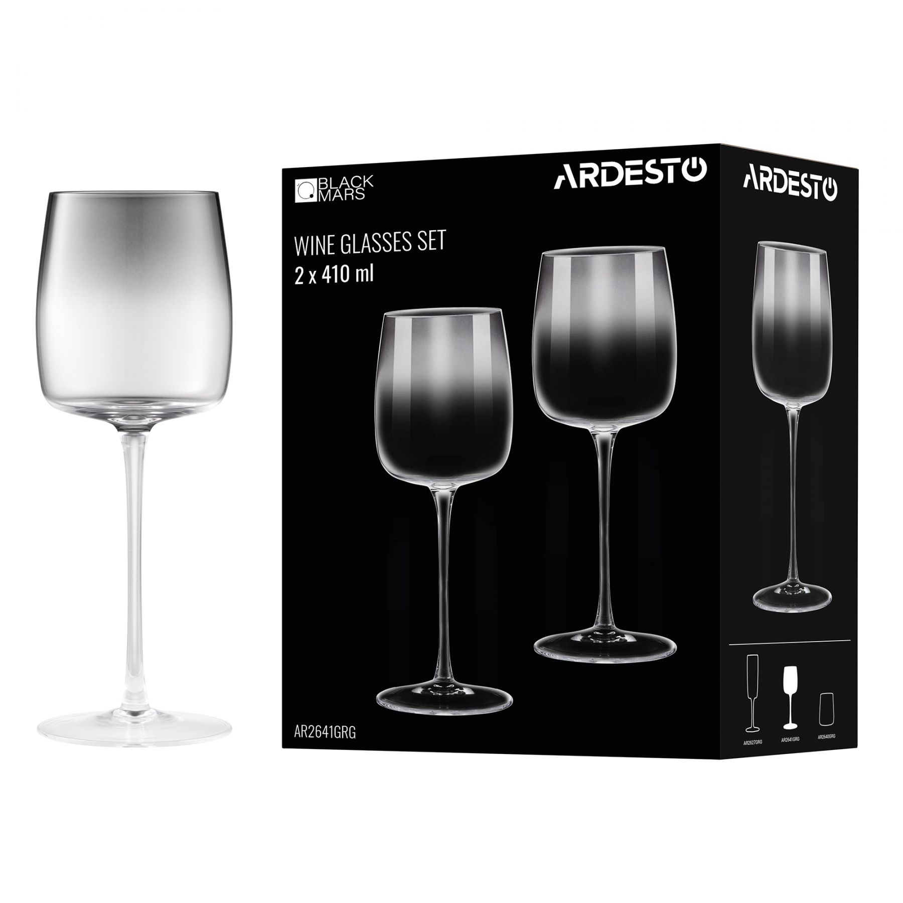 Набір келихів для вина ARDESTO Black Mars Mira 410мл, 2шт, скло, сірий