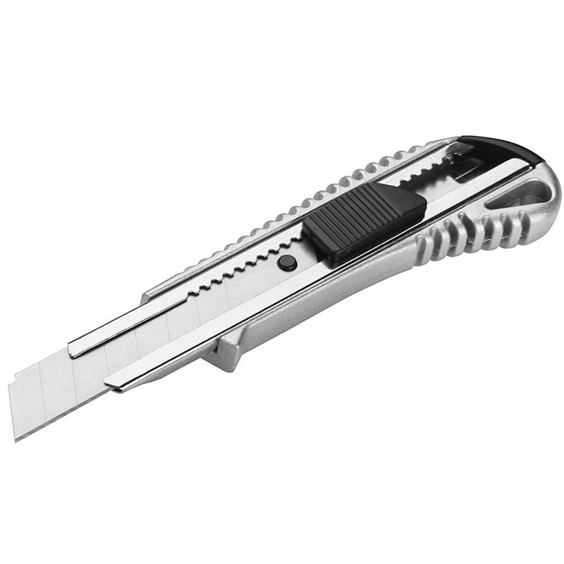 Ніж сегментований алюмінієвий Tolsen з шириною леза 18 мм призначений для різання плівки, скотча, монтажної піни, ковроліну, гіпсокартону. Ріжучий інструмент широко застосовується при проведенні будівельних і монтажних робіт. Корпус ножа виготовлений з алюмінієвого сплаву. Завдяки високій удароміцності матеріалу, виріб характеризується довгим терміном служби. Конструкція включає металеву направляючу, плоску кнопку руху і фіксації леза.