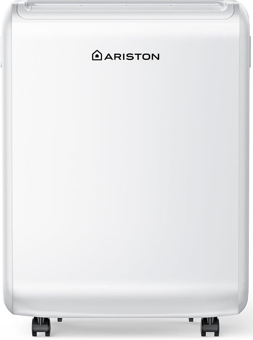 Ariston Deos EVO 12 — компактний побутовий осушувач повітря продуктивністю 12 л/добу для приміщень до 35 м². Оснащений фреоном R290, електронним керуванням, дисплеєм, таймером і гігростатом. Має бак 1,8 л, автовідключення, безперервний злив і колеса для мобільності. Споживає 210 Вт, рівень шуму до 42 дБ. Сірий корпус вагою 12,3 кг ідеально підходить для ванни, квартири чи будинку.