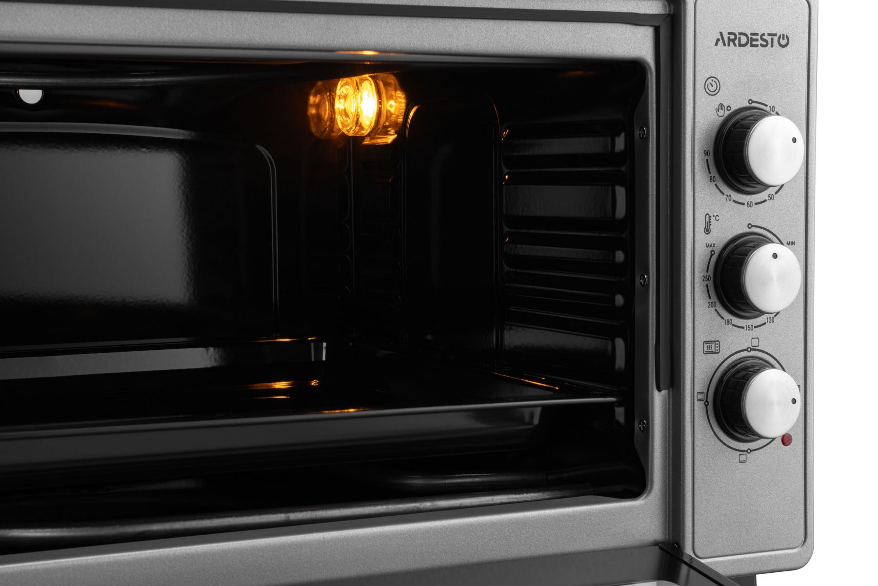 Електропіч ARDESTO MEO-N48GR має потужність 1 700 Вт, що дає змогу швидко нагрівати пристрій до потрібної температури. Об’єм внутрішньої камери становить 48 л, чого достатньо для приготування різних порцій їжі.