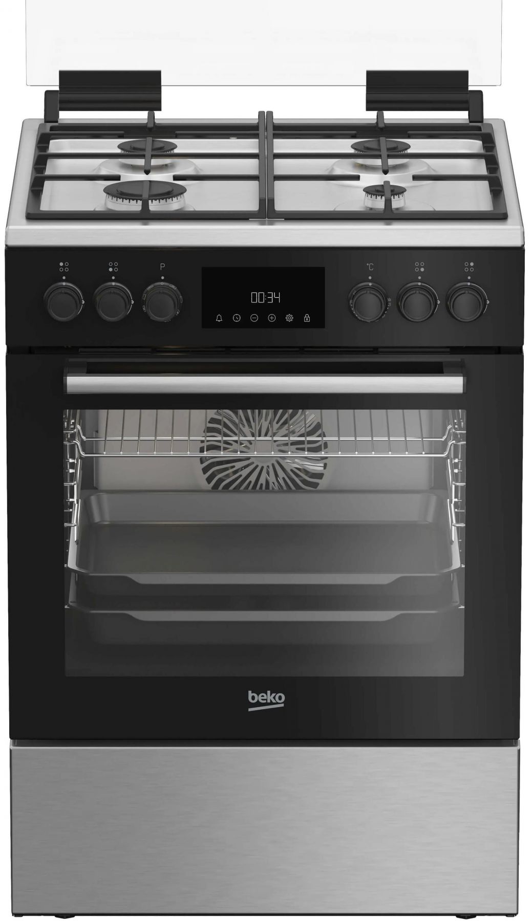 Плита Beko комбінована, 72л, 60x60см, дисплей, конвекція, чавун, чорний