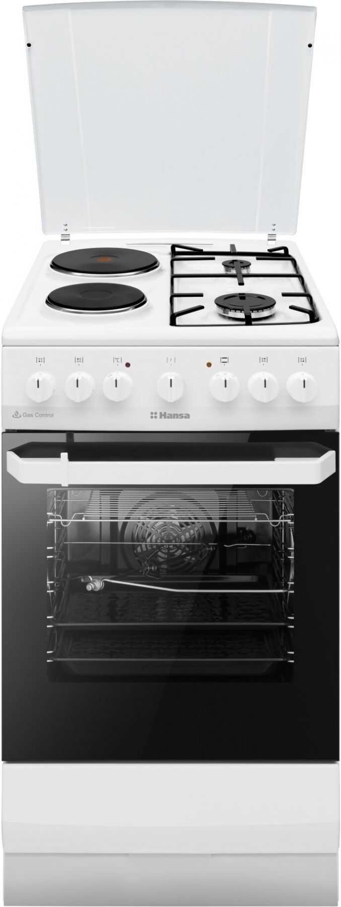 Плита Hansa з комбі. вар. поверхнею, 50х60см, 65л, емаль, газ контр., білий