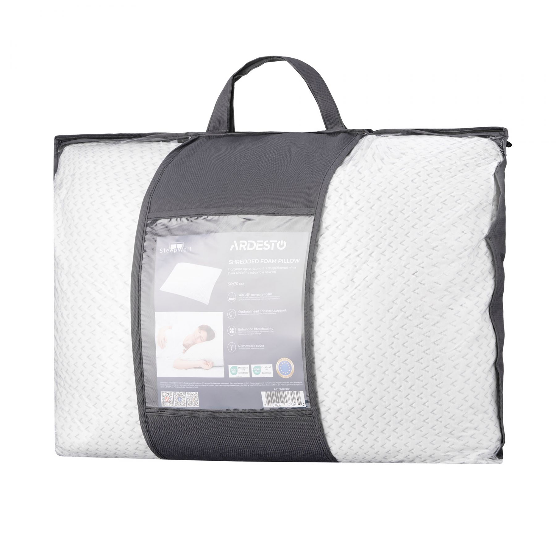 Ортопедична подушка серії Sleepwell – ключ до здорового сну та відпочинку. Завдяки наповнювачу з подрібненої піни AirCell з ефектом «запам’ятовування» контурів тіла вона забезпечує комфортне підтримання голови та шиї.