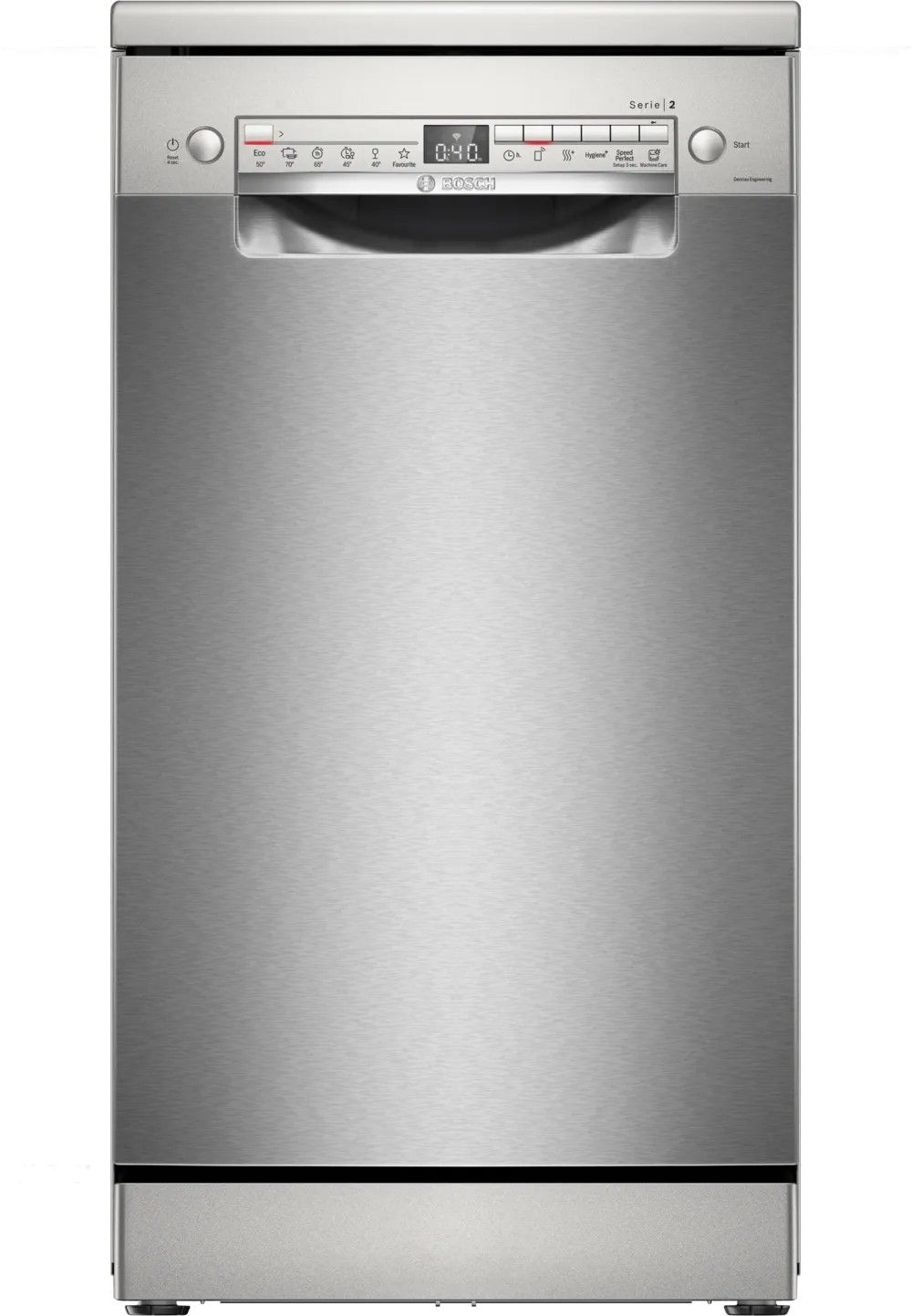 Bosch SPS2IKI55K — вузька посудомийна машина з підтримкою Wi-Fi та застосунку Home Connect, яка забезпечує ідеальну сушку навіть пластикового посуду, тишу в роботі та інтелектуальний вибір програм. Ідеальне рішення для компактних кухонь, що поєднує інновації Bosch із комфортом повсякденного використання. Завдяки сучасним функціям, таким як ExtraDry, Easy Start і SpeedPerfect, вона легко адаптується до ваших щоденних потреб.