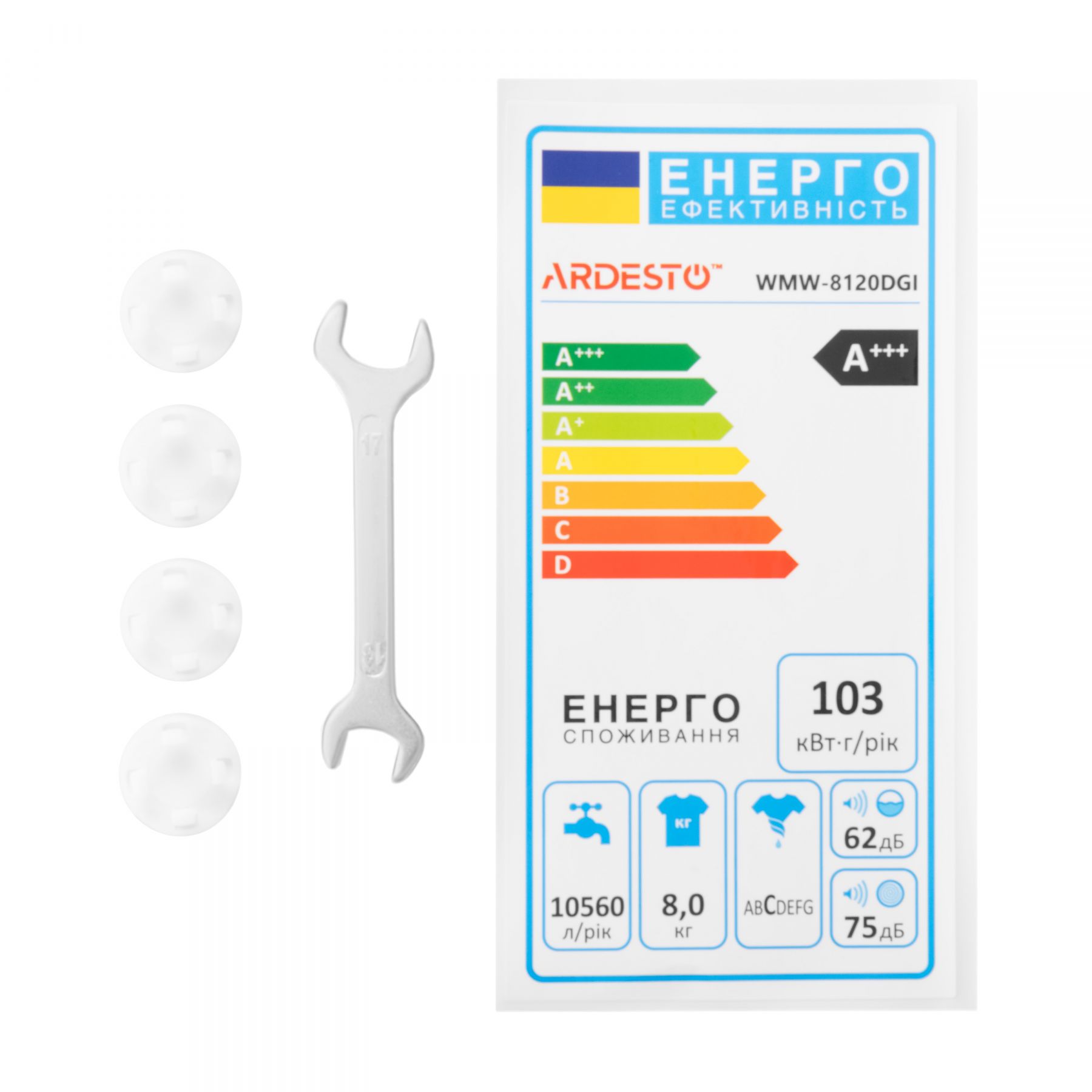 Пральна машина ARDESTO фронтальна, 8кг, 1200, А+++, 55см, дисплей, пара, інвертор, сірий