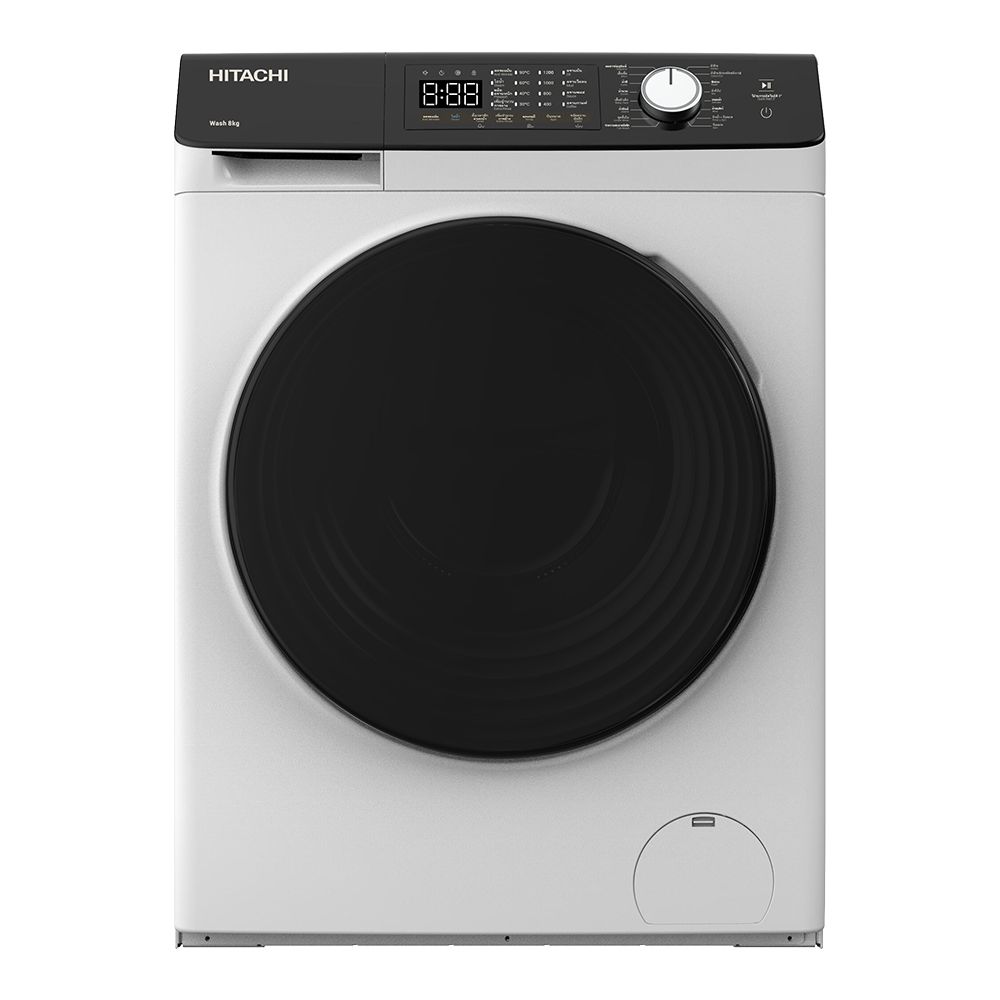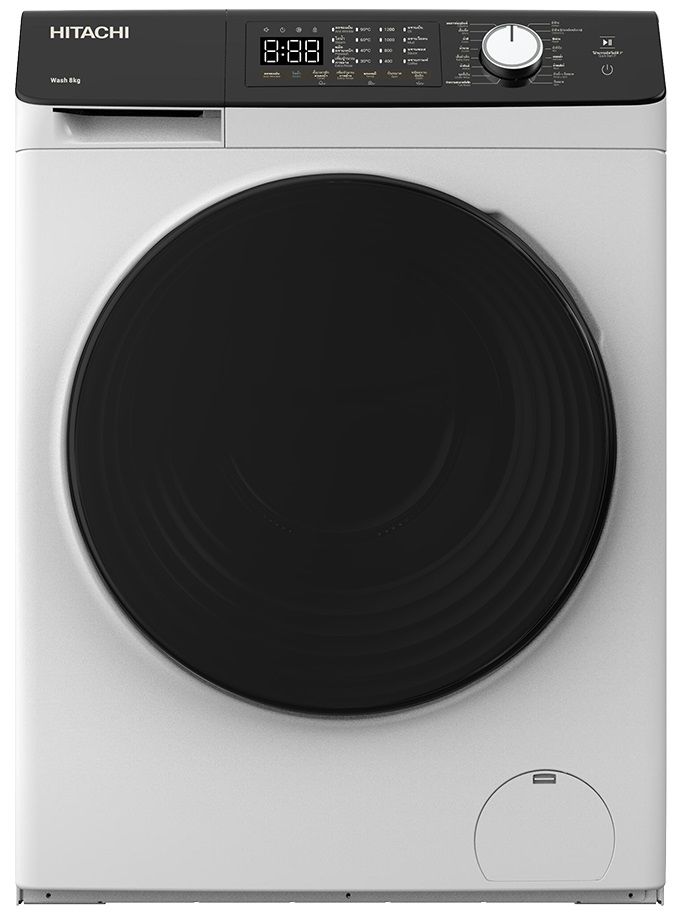 Пральна машина Hitachi фронтальна, 8кг, 1400, A+++, 60см, дисплей, пара, інвертор, люк чорний, білий