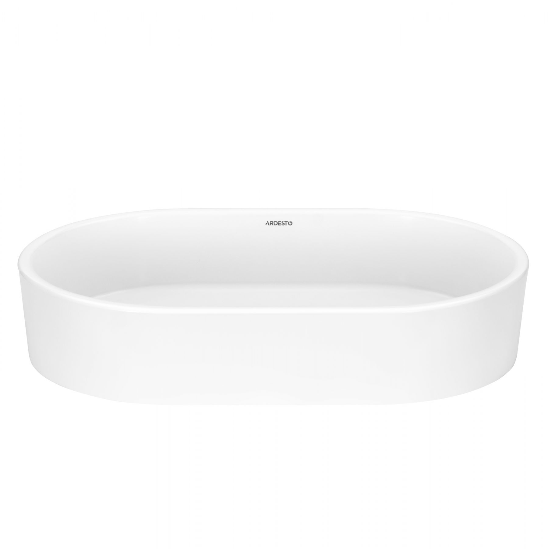 Раковина, умивальник ARDESTO Elle, штучний камінь, овальна, без отвору для змішувача та переливу, 540x350x110мм, накладний, білий