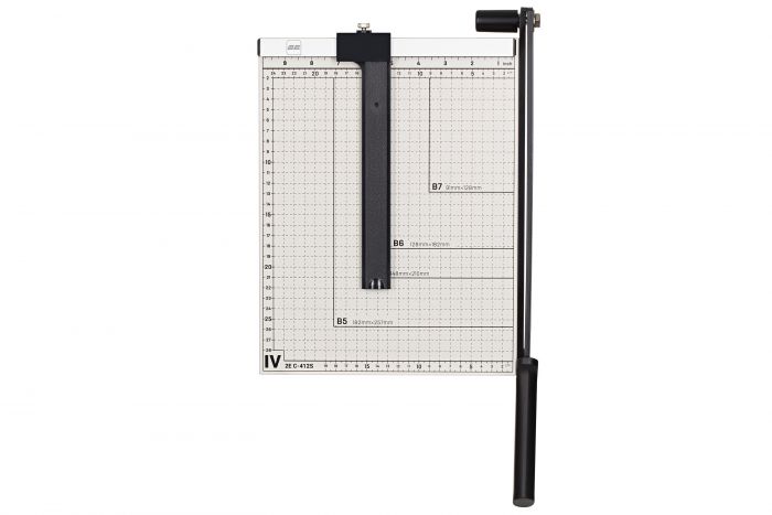 Різак шабельного типу для паперу формату A4 із притиском ручного типу стане в пригоді для підрізання документів, фото та інших паперів як вдома, так і в офісі. Одночасно можна нарізати до 12 сторінок. Матеріал робочої поверхні – сталь, а її розмір 300 × 250 мм.