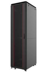 Шафа MIRSAN 19", 42U, GTV, скляні двері, 600x800 мм, максимально 2000 кг, чорна