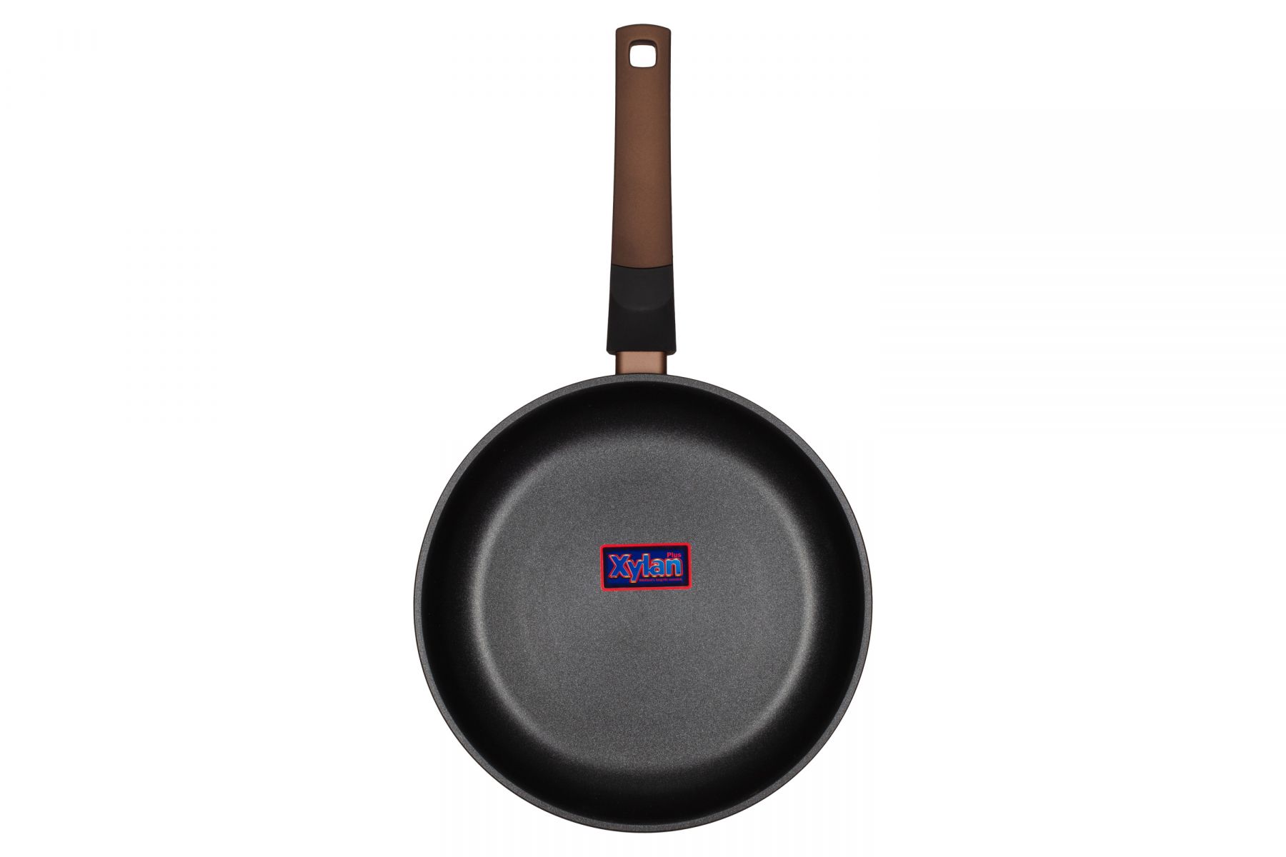 Алюмінієва сковорода Gemini коричневого кольору з багатошаровим антипригарним покриттям Xylan Plus® та термостійкою бакелітовою ручкою. Сковорода Gemini сумісна з усіма видами плит. Не придатна для використання в посудомийній машині.
