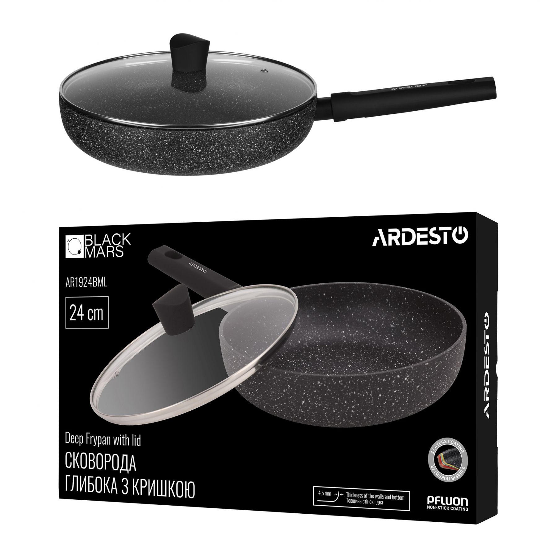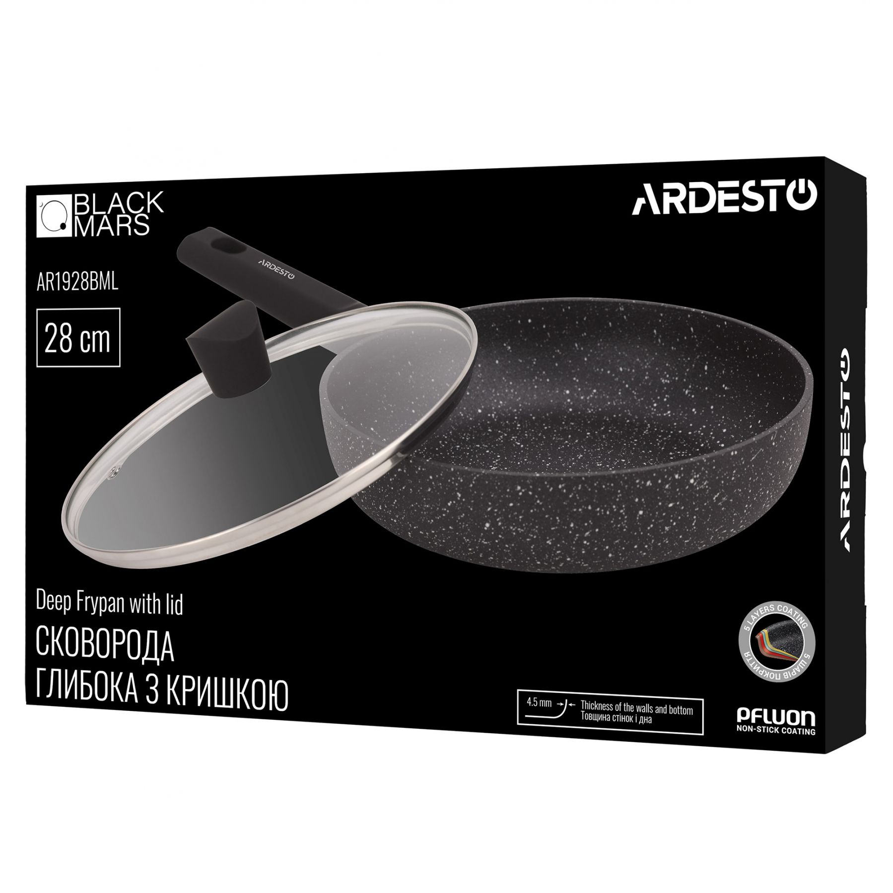 Сковорода глибока з кришкою Ardesto Black Mars Alcor, 28см, алюміній, чорний