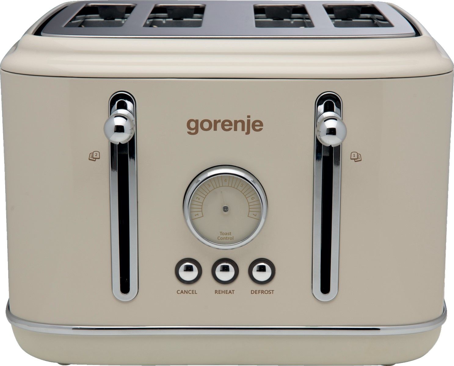 Тостер Gorenje, 950Вт, функц. розморожування, автовідключення, пластик + металл, бежевий