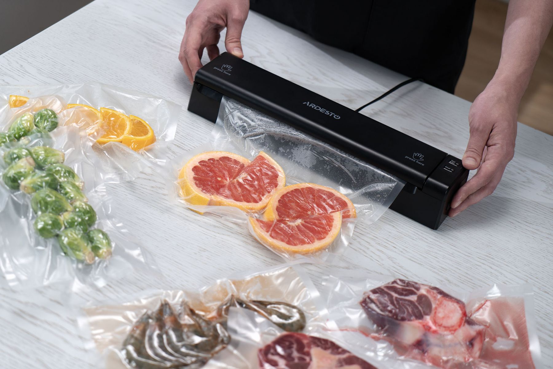 Вакууматор ARDESTO для пакетів та рулонів, 110Вт, 28см, електронне, + 1 рулон, пластик, чорний