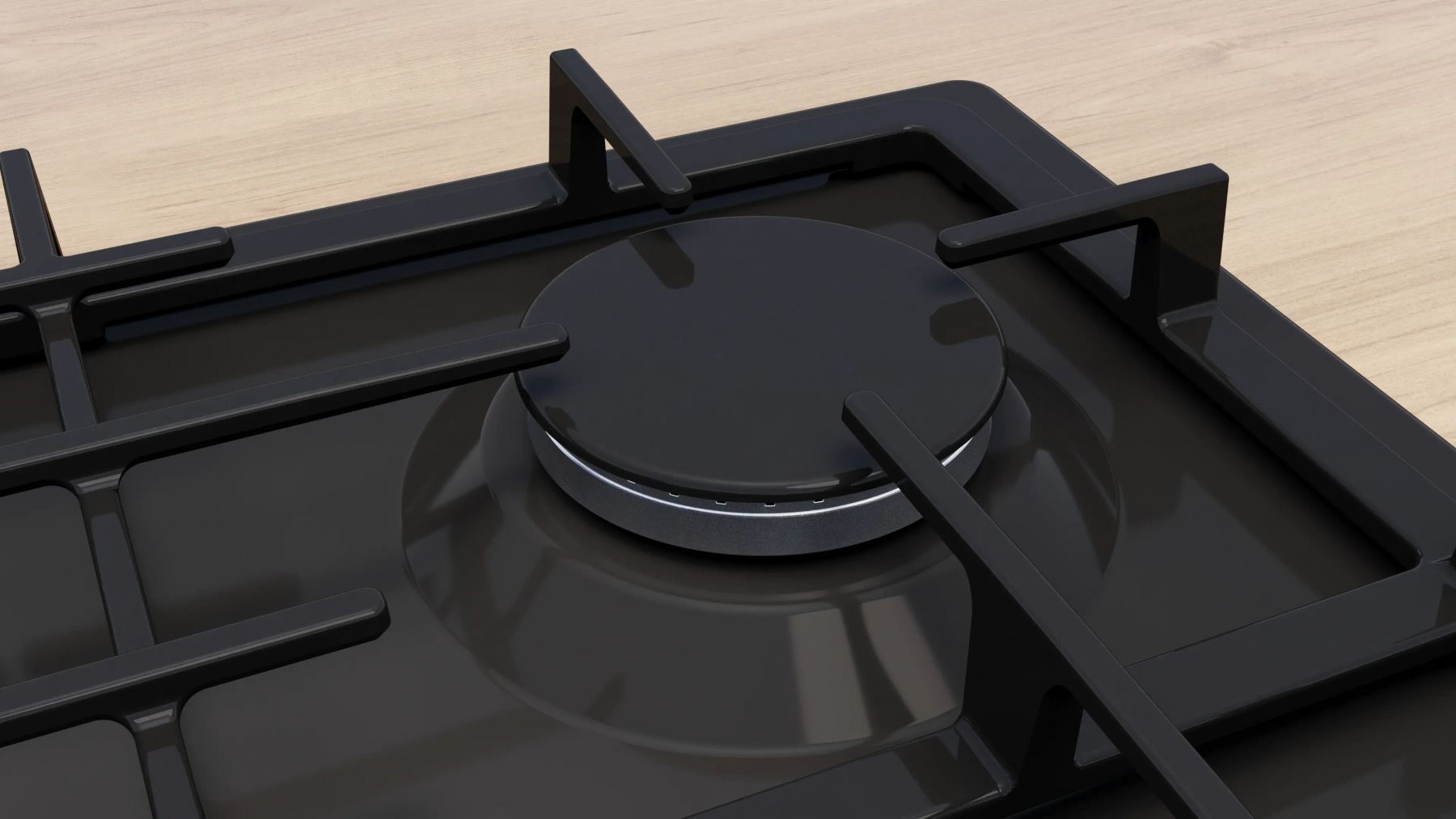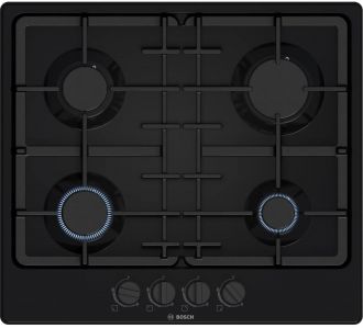 Вбудована газова варильна поверхня Bosch Serie 2 PGP6B6K90R, шириною 60 см, елегантна емальована поверхня в чорному кольорі, 4 конфорки, чавунні решітки, автоматичне електрозапалення та термоелектричний захист від витоків газу.