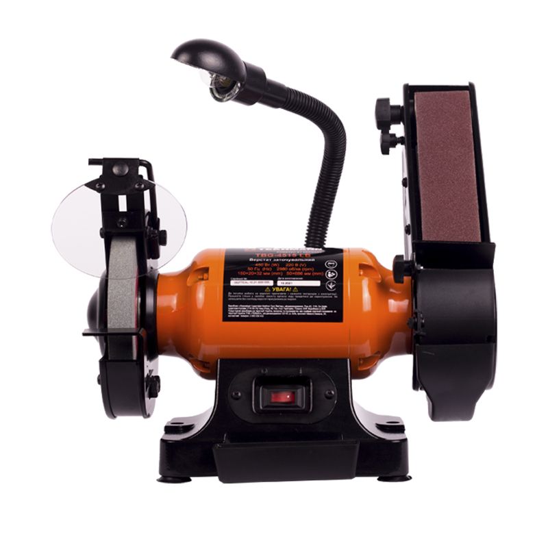 Верстат заточувальний TBG-4515 LB застосовується як універсальний настільний пристрій для швидкого ручного механізованого заточування різного ріжучого інструменту, видалення гострих кромок, залишків і напливів на виробах з металу та з інших матеріалів абразивним колом і абразивною стрічкою у побутових умовах.