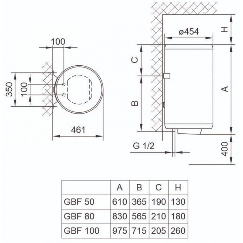Водонагрівач на 100 літрів з циліндричним баком має вертикальну установку. Бак оснащений двома сухими тенами, потужність кожного по 1000 Вт, а загальна потужність 2000 Вт. Це дозволяє нагрівати воду до температури 65 ° С всього за 235 хвилин. Бак має механічне управління, що дозволяє швидко та зручно налаштовувати потрібну Вам температуру.