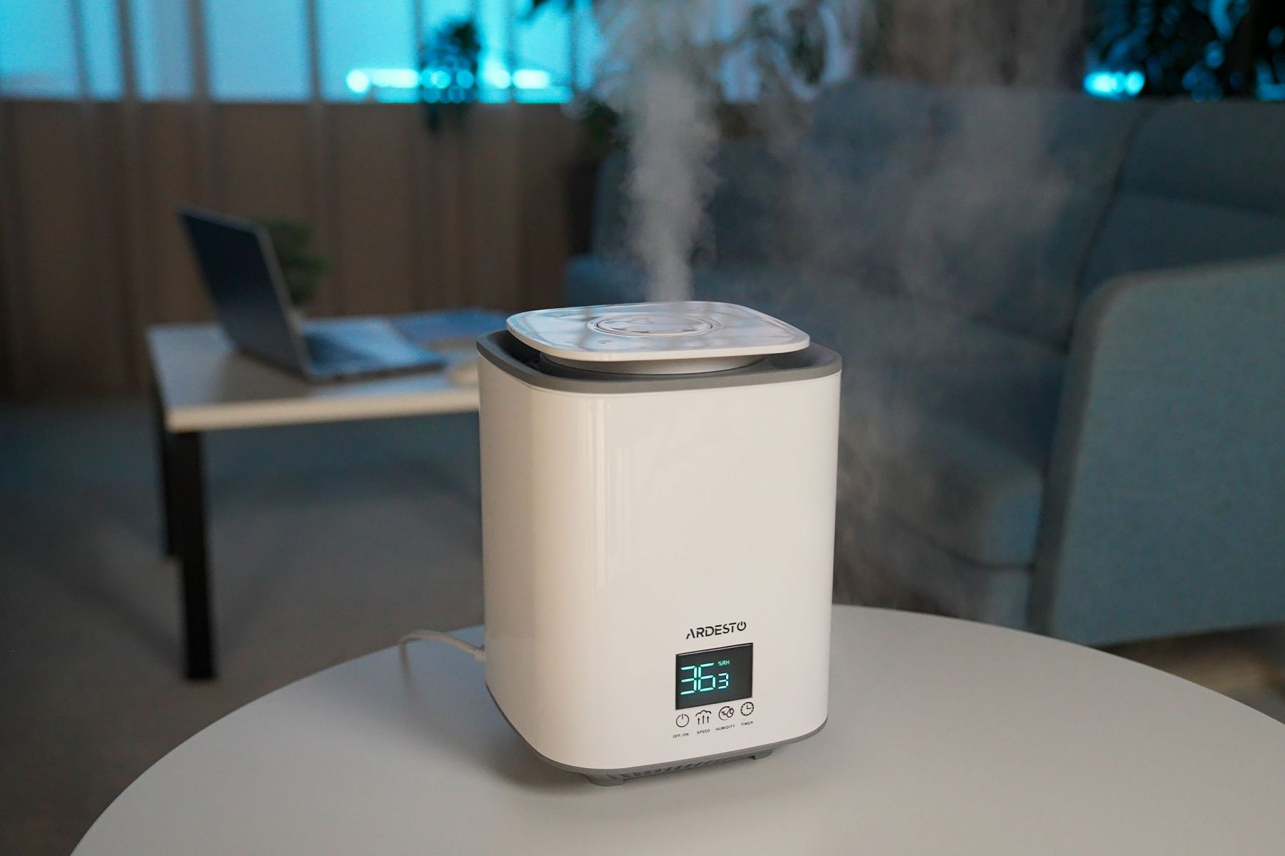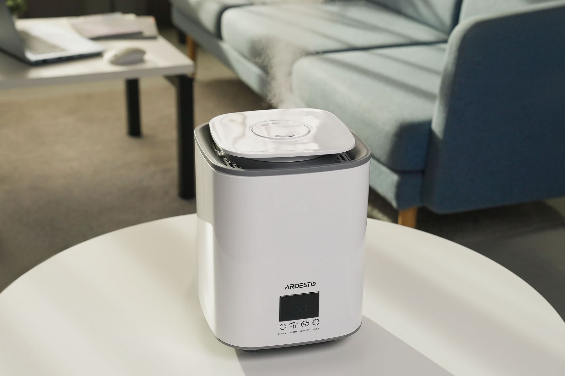 Зволожувач повітря ARDESTO ультразвуковий, 25м2, 3.1л, 250мл/г, електр. кер-ння, верх. залив води, дисплей, білий