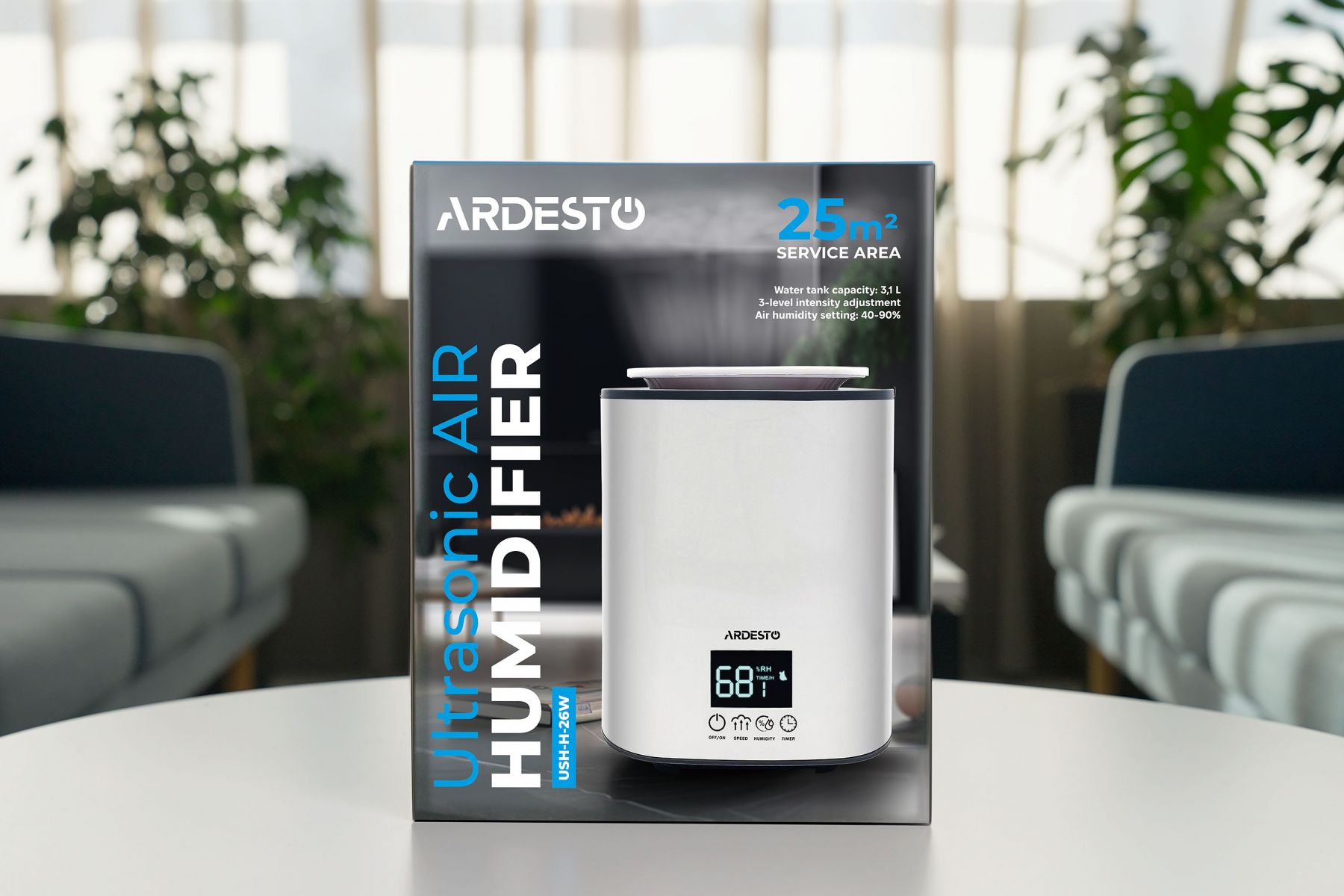 З ультразвуковим зволожувачем повітря ARDESTO USH-H-26W атмосфера в приміщеннях до 25 м² буде сприятливою і комфортною для роботи, відпочинку чи спортивних занять. Об’єм резервуара для води зі знімною кришкою становить 3,1 л. Інтуїтивне сенсорне керування, таймер із налаштуванням від 1 до 9 год, регулятор інтенсивності випаровування (3 режими) та тиха робота – особливості, які роблять зволожувач вдалим вибором.