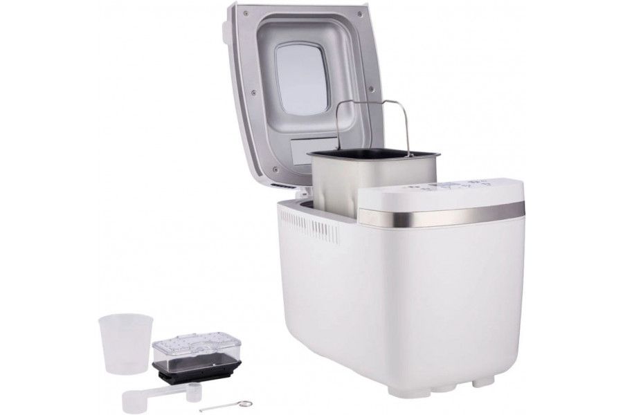 Додатково:Звуковий сигнал, автоматичне відключення, заміс тіста, збереження програми випічки при знеструмленні приладу, знімна ємність з тефлоновим покриттям, функція підтримки тепла, підрум'янення скоринки, нековзкі ніжки