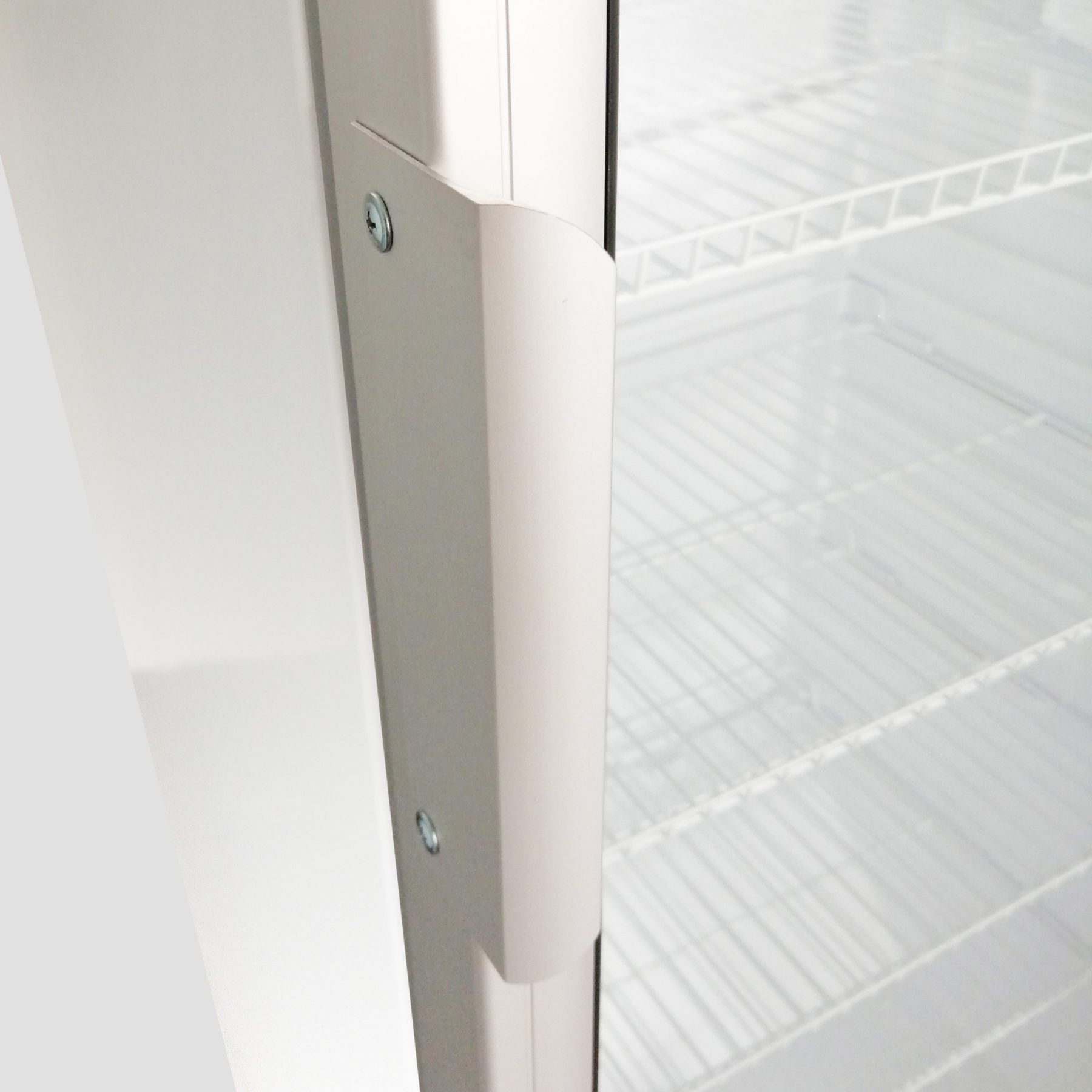 Холодильна вітрина CD35DM-S300S – це компактне та функціональне рішення для зберігання та демонстрації напоїв і продуктів у магазинах, кафе та ресторанах. Завдяки об’єму 350 літрів, 5 полицям і ємності до 154 пляшок, вона дозволяє оптимально організувати простір. Одна температурна зона забезпечує рівномірне охолодження, а алюмінієві двері з прозорим склом гарантують гарну видимість продукції. Білий корпус додає естетики та легко вписується в будь-який інтер’єр.